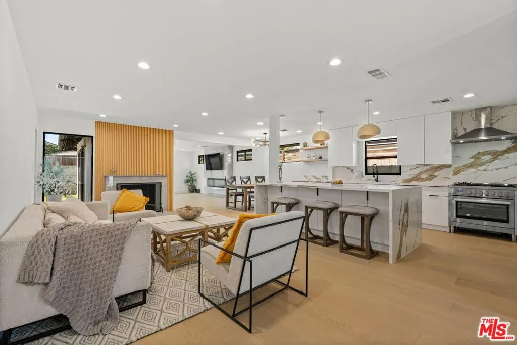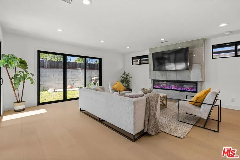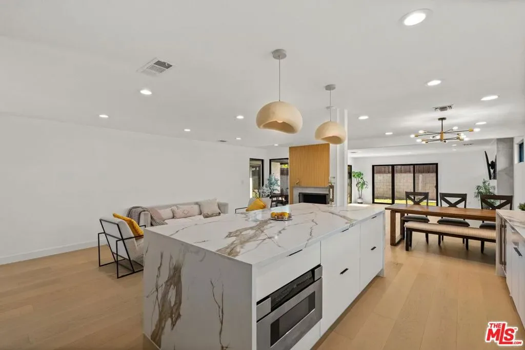 Nestled on a quiet, tree-lined street, this beautiful, privately gated, and newly remodeled residence offers the perfect blend of comfort, style, and modern California living. The home features three generously sized bedrooms and three bathrooms, thoughtfully designed within a bright and airy open floor plan. Also, a bonus room was added (previously one of the primary bedroom closets), used as a nursery/office. Buyer to verify. Large windows and sliding glass doors throughout the home flood the interiors with natural light and create a seamless indoor-outdoor flow. At the heart of the home is a chef’s kitchen designed for both everyday living and entertaining. It features custom cabinetry, elegant quartz countertops, a built-in wine cooler, and an expansive center island with cabinetry on both sides for exceptional storage. The large island also serves as a welcoming breakfast area where family and friends can gather. Multiple inviting living spaces include a living room with a fireplace, a dining area, and a spacious family room featuring a beautiful fireplace and two sliding doors that open directly to the backyard and a covered outdoor dining areaperfect for entertaining or enjoying relaxed evenings at home. The primary suite is generously sized and offers direct access to the backyard, a private en-suite bathroom, and a walk-in closet. The second bedroom is impressively spacious, with plenty of room to comfortably accommodate two queen-size beds and nightstands, making it ideal for siblings or growing families. Outdoor living is a true highlight of this property. The home offers multiple outdoor spaces, including a private backyard, a covered outdoor dining area, a charming sitting area near the entrance, and additional gated space in front of the garage that can be used for parking or even a basketball practice area. Ideally located near shopping, groceries, dining, and a nearby mall, this exceptional home offers both tranquility and everyday convenience.