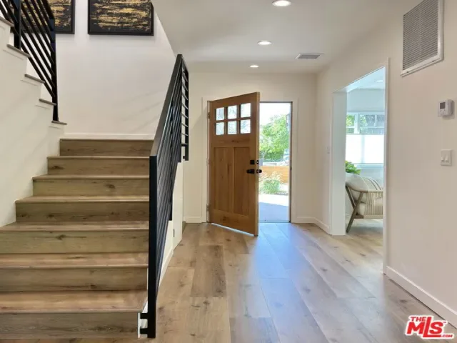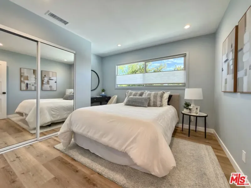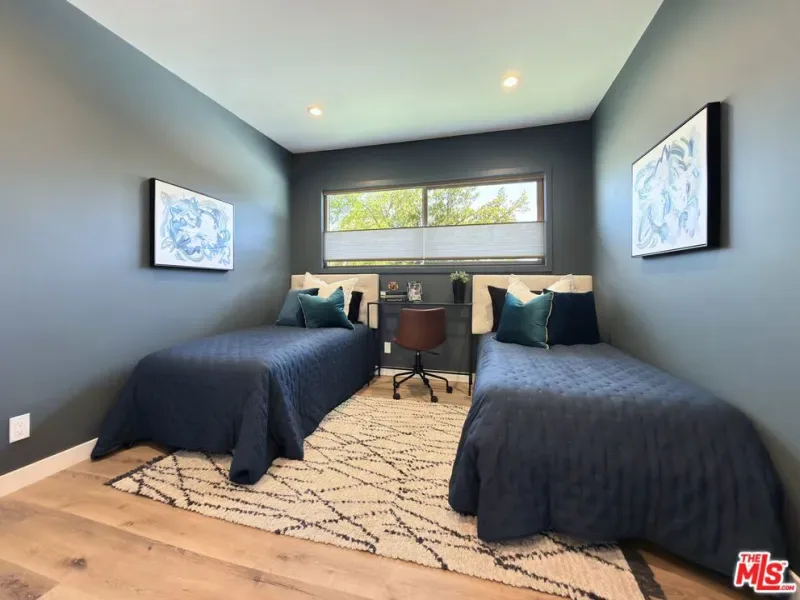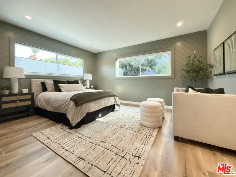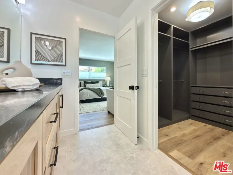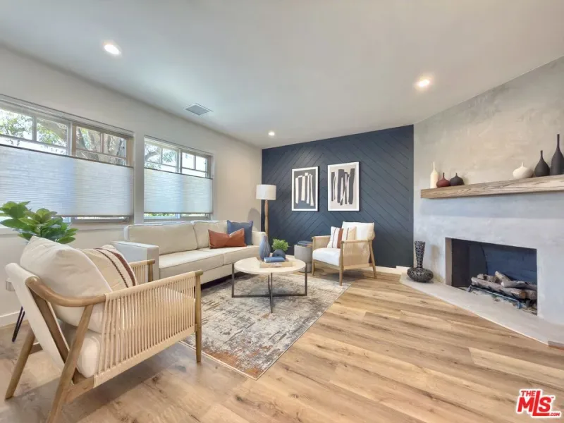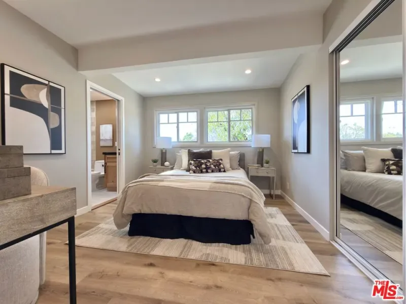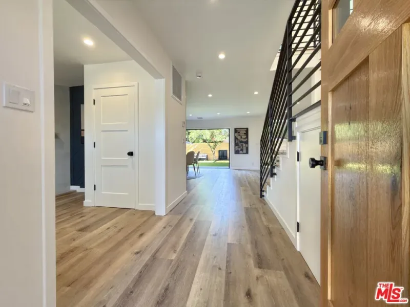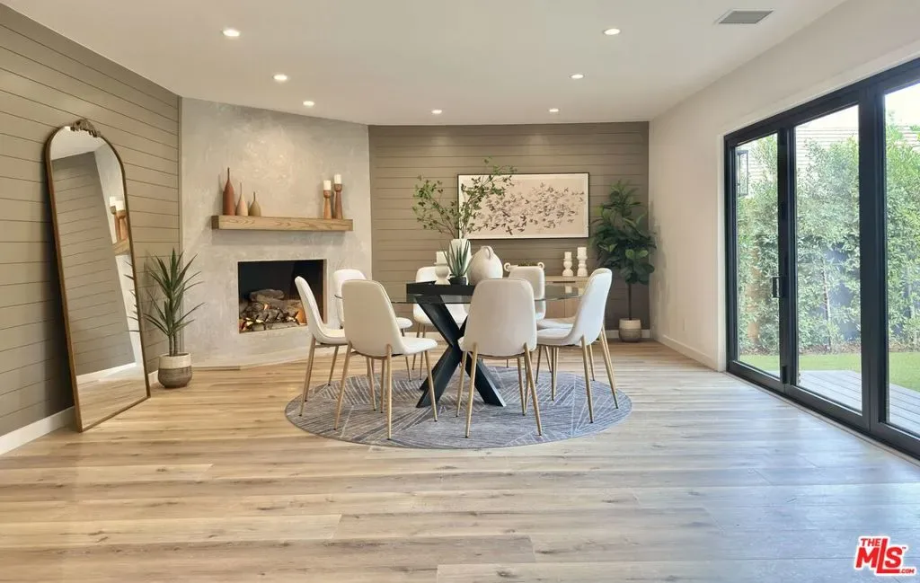 Located in the coveted Chandler Estates area of Sherman Oaks. This two story home has an exceptional floor plan. Spacious open common areas on the first floor with all four bedrooms including two suites together on the second floor. Complete renovation with a warm calming design in mind that feels casually elegant and modern. The formal entry hall has a den/office/guest space with closet and fireplace to one side and a beautifully remodeled 3/4 bath on the other. Continuing on, the floor plan opens up to a spacious dining room, kitchen, and living room that are very connected all opening to back through folding patio doors that easily blend the inside to outside when entertaining or just wanting to enjoy a beautiful California day. The kitchen is spectacular anchored by two islands and pro-level stainless steel appliances. Additional features include both wine and beverage refrigerators, built-in microwave, pantry cabinets and closet, leathered finished porcelain counters, two sinks, and hand crafted artistic copper pendant lighting. The formal dining area is spacious and can support larger tables suitable for many. There’s a fireplace here too that will add elegance to any gathering. The living room features an entertainment wall offering ample storage/counter space flanking a third fireplace. Doors fold completely open to a private outdoor space protected by a louvered roof patio cover offering sun or shade as desired. Upstairs the primary suite features separate wall and walk-in closets. The bathroom has a double vanity with leather finished granite counters, double shower stall, and soaking tub. There’s another smaller bedroom suite with private bath leaving the hall bath shared by adjacent bedrooms 3 and 4. The laundry closet is also located on this floor. There’s an oversized two car garage that’s EV ready with direct access into the kitchen. The A/C is 3-zone new and efficient. Everything is done and well thought out for the buyer who just wants to move in and do nothing. A must see home! There is a recent pool/spa approved permit. Diagram and bid viewable at the home.
