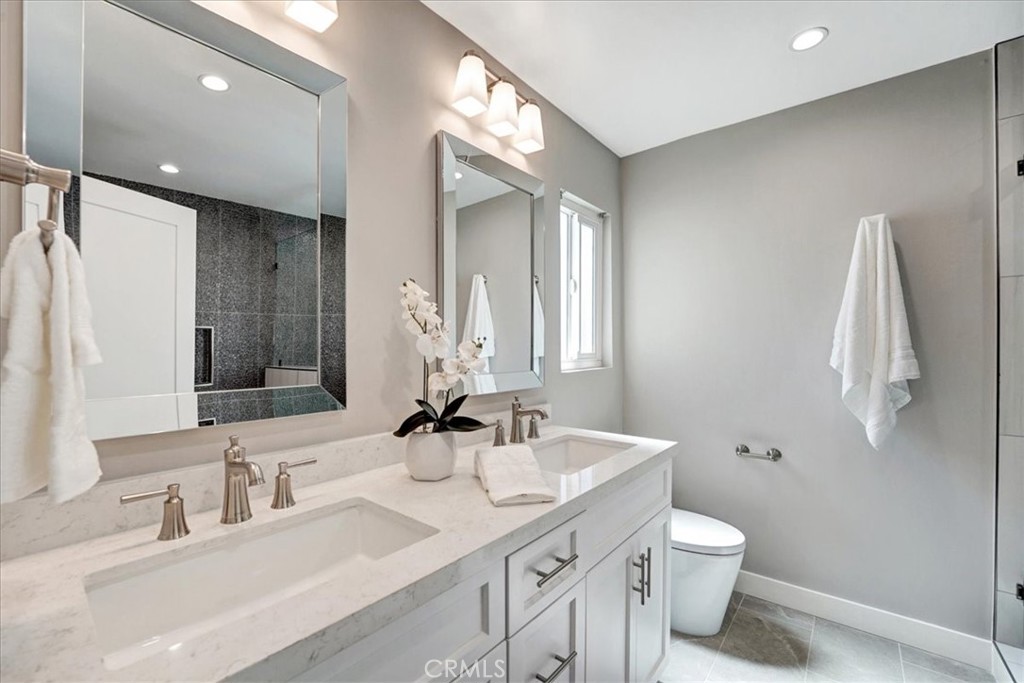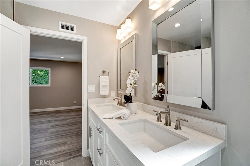 Sherman Oak beautiful and sophisticated extensively remodeled contemporary home with pool and spa in desirable Chandler Estates. 4BR, 2.5BA, approx. 2,517sf with exquisite finishes and superb quality. Dramatic spacious living room with soaring vaulted beamed ceilings and an open floor plan with an infusion of natural light. Elegant family room with inviting fireplace opens to formal dining room leading to a brilliant large kitchen. FR with sliders to a covered patio and remodeled large heated swimming pool and spa with newer equipment and decking ideal for Al Fresco dining, relaxing or entertaining in a private setting. Large sensational chef’s kitchen with quartz counters, Bosch stainless steel appliances with double door refrigerator, 6-burner gas range, and plentiful cabinets. A powder room and laundry room with washer and dryer complete the lower level. Upstairs with 4 bedrooms and 2 bathrooms including the massive primary bedroom with walk-in closet and luxurious bathroom with double sinks, separate shower and tub. Stunning remodeled hallway bathroom with double sinks and shower over tub. The 3 secondary bedrooms are well proportioned. Residence boasts throughout designer gray tones wide plank laminate flooring and showcases recessed lighting and fresh interior new paint. 2 car attached garage with direct access and expanded driveway, double pane windows, nest thermostat, newer water heater and central air and heat. Newer “Cool” roof for additional energy savings and an EV charger. Weekly gardener and pool services included. Enjoy a contemporary lifestyle with sublime comfort and a modern design. Close to famed shops and restaurants on Ventura Blvd, Trader Joes, shopping, freeways, studios and the Westside. Prepare to be impressed! A winner!