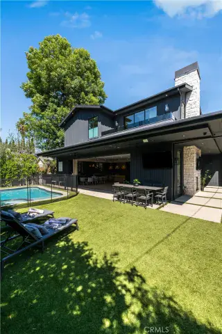 A luxurious family home, this unique property offers a the wonderful combination of great comfort and with warm finishes throughout. Everyone can enjoy the experience of playing basketball in the fully gated front yard, where neighbors their walk dogs and provide a real neighborhood feel. Open floor plan offers a comfortable primary living area with open chefs kitchen, an abundance of island seating, and top-of-the-line appliances. A Wall of glass sliders invite you to an expansive and private entertainers backyard, with plenty of play and relaxing space by the refreshing pool and spa. Gorgeous dining area with sliders open to gracious outdoor patio. And an outdoor shower !