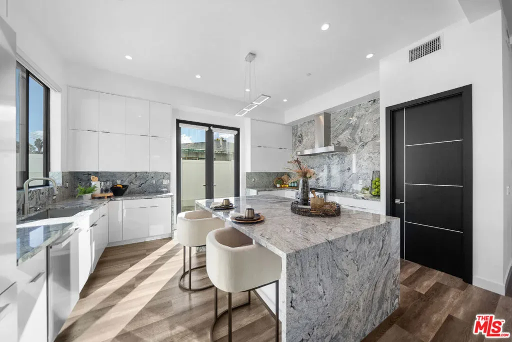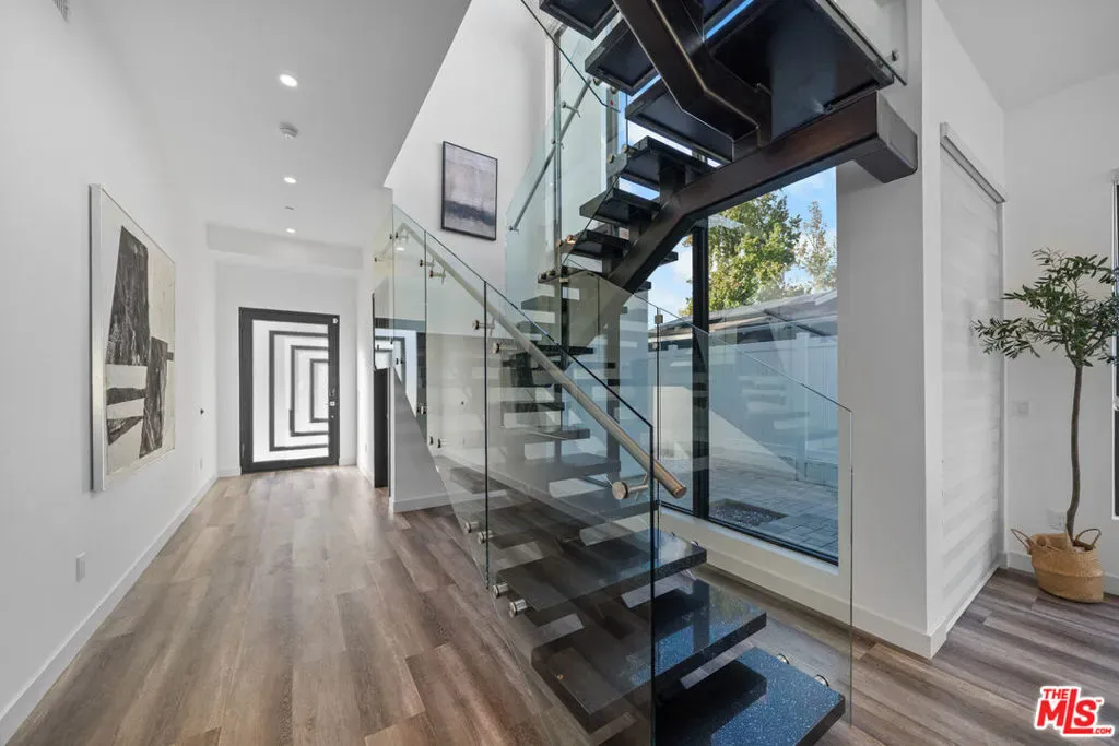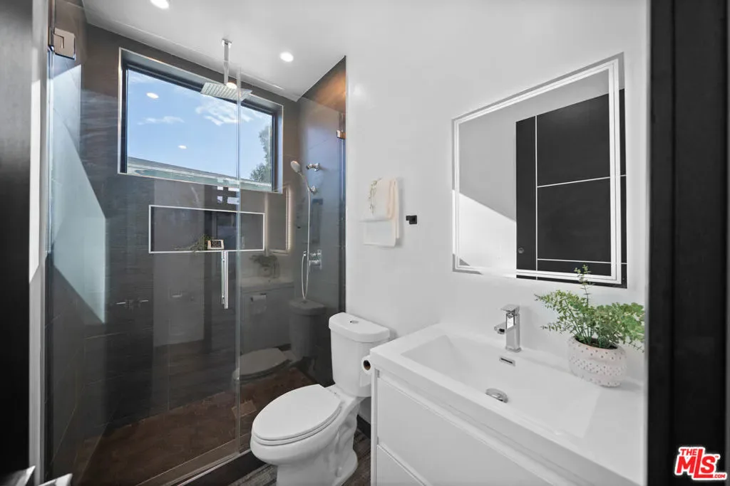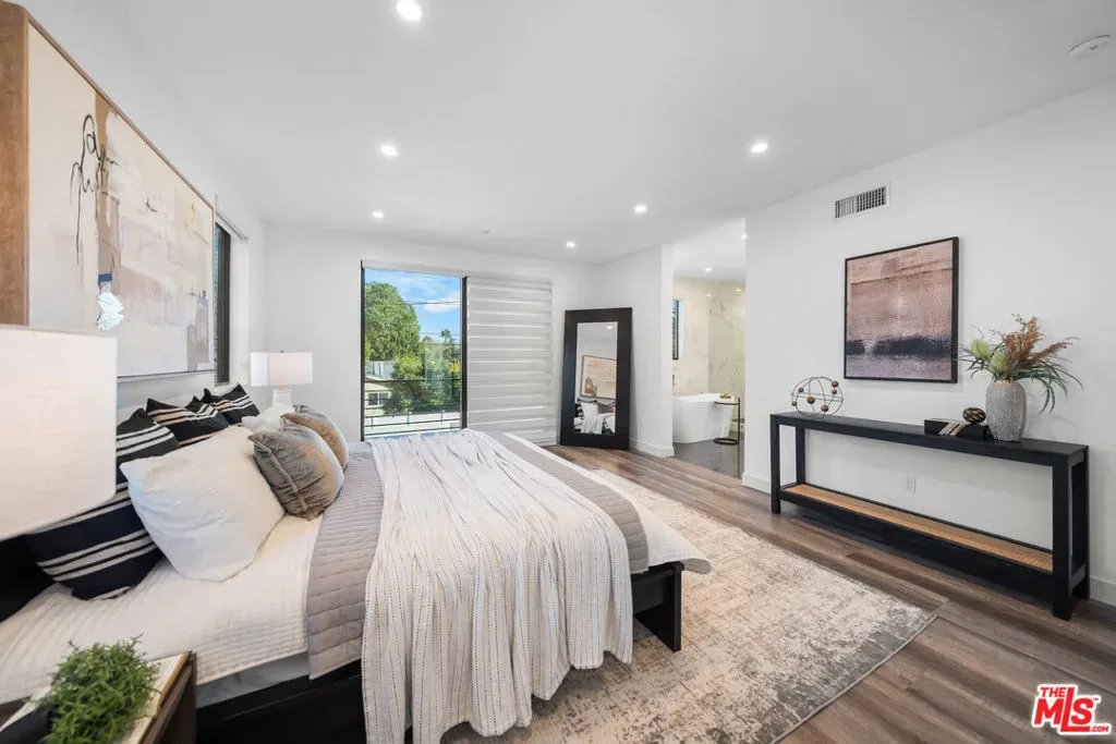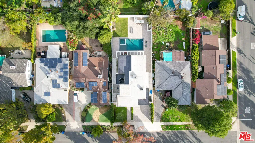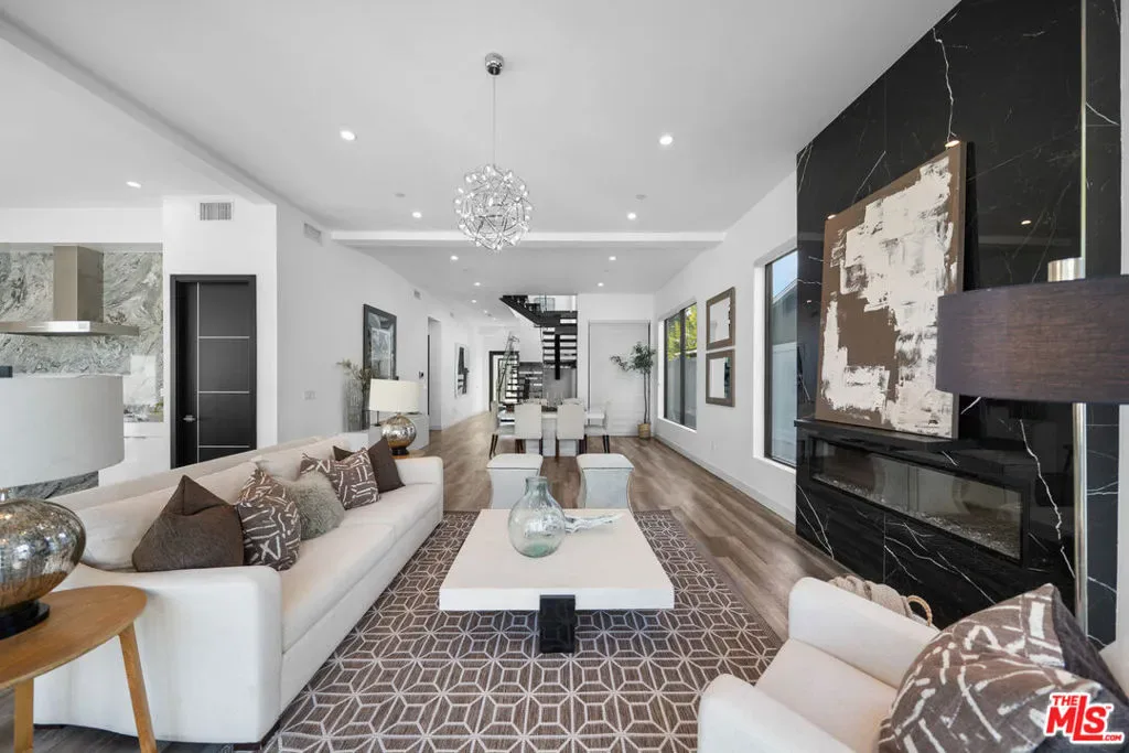 Newly built in 2020, this modern two-story home features 5 ensuite bedrooms, 5.5 baths, and an office. The open floor plan offers high ceilings, floor-to-ceiling windows, and seamless indoor-outdoor flow. The elegant living and dining area centers around a stone-framed linear fireplace, while the gourmet kitchen boasts Miele appliances, a center island, and breakfast bar. Sliding glass doors lead to an entertainer’s backyard with a sunken fire pit, BBQ area, and sparkling saltwater pool & spa. The luxurious primary suite includes a spa-like bath, walk-in closet, and private balcony. Enjoy multiple patios, a sundeck with city views, and a 2-car garage with EV charger – modern elegance and comfort in every detail. Property is tenant-occupied until January 2027.