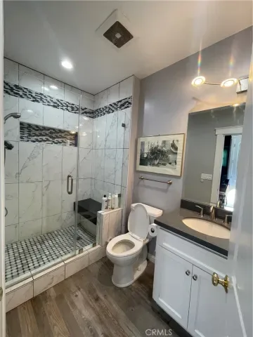 marble countertop, custom cabinetry, and a walk-in shower. A convenient **half bath** is located off the updated laundry room. The **permitted ADU** is a fully functional living space, complete with a **kitchen, living area, sleeping area, full bathroom, and laundry facilities.** Lot’s of parking! Don’t miss your chance to own this beautifully updated and thoughtfully designed home in one of the area’s most sought-after neighborhoods.