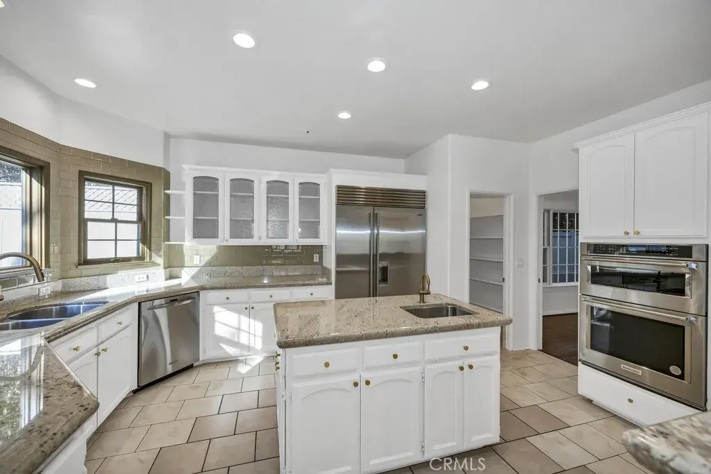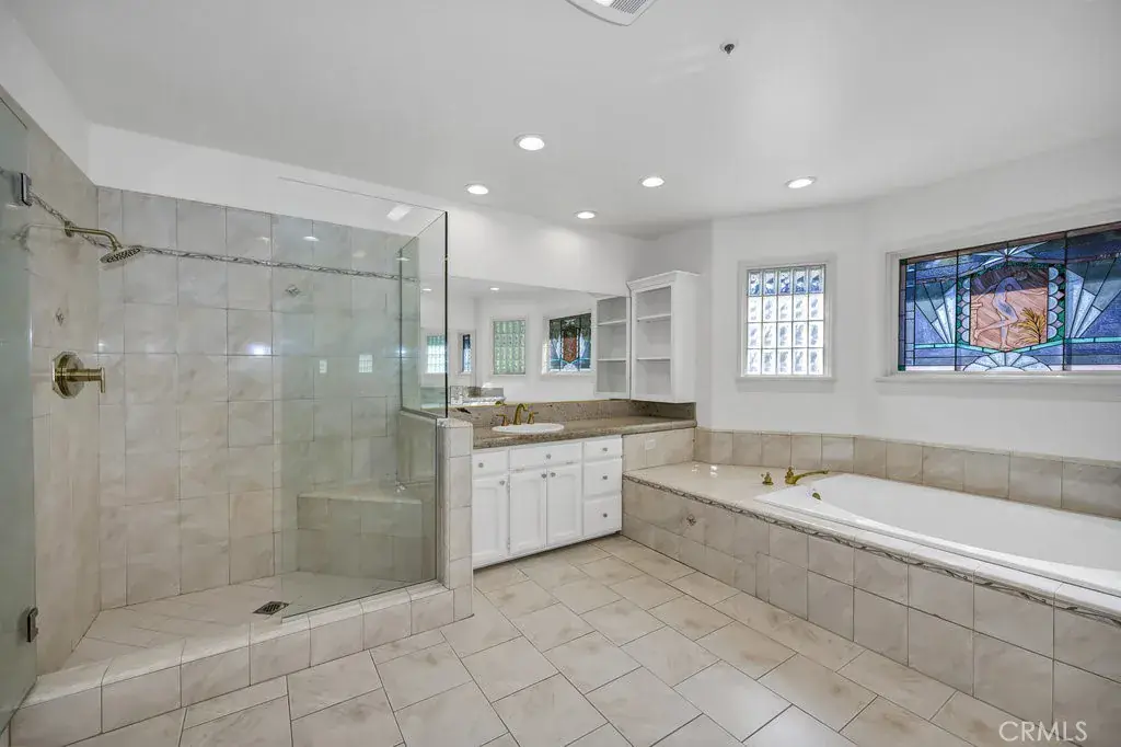 Welcome to this exceptional Sierra Madre residence, introduced by a beautifully crafted paver driveway that leads to a spacious 2-car attached garage featuring built-in cabinetry and a convenient workbench. Step inside to a grand two-story foyer that opens to a sunken living room adorned with an elegant fireplace and direct access to the formal dining room—an ideal setting for gatherings and celebrations. A conveniently located downstairs bedroom with a generous closet sits adjacent to a full bathroom, making it perfect for guests or a mother-in-law suite. The expansive kitchen is thoughtfully positioned between the formal and informal dining areas and showcases a Sub-Zero refrigerator, brand-new built-in oven/microwave combo, stainless steel hood, large walk-in pantry, prep island with sink, and custom granite countertops. The cooktop peninsula offers comfortable pub-height seating for 5–6, creating a natural hub for conversation. The sunken family room features a second inviting fireplace and a sliding glass door that opens to the peaceful backyard. Upstairs, the primary suite impresses with ample room for a sitting area and dual cedar-lined walk-in closets. The luxurious ensuite bathroom includes a decorative glass pocket door, spa tub, walk-in shower, stained-glass accents, glass-block windows, and dual granite-topped vanities. Additional highlights include a dedicated laundry room with extensive cabinetry, granite counters, and a utility sink. Adjacent is a versatile utility room ideal for storage, a home gym, workshop, or other creative uses. The private, fully enclosed backyard is low-maintenance and beautifully designed with drought-tolerant landscaping, elegant pavers, and a tranquil water feature. Recent improvements include fresh interior and exterior paint, new recessed lighting throughout, and all-new fixtures. The home is further enhanced with hardwood, tile, and vinyl flooring; a central vacuum system; new Decora light switches; a newer dual-zone HVAC system; an alarm system; a fire sprinkler system; and a Cummins generator for ultimate peace of mind.