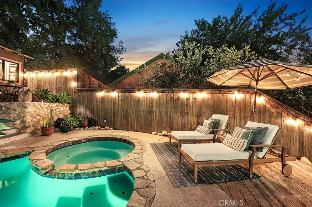 OUTDOOR LIVING IS EXCEPTIONAL FOR A CANYON PROPERTY, FEATURING A HEATED POOL AND SPA, RECENTLY UPDATED WITH NEW FILTER, PLASTER, AND TILE (APPROX. 2 YEARS OLD). ECO-EFFICIENT LANDSCAPING COMPLEMENTS THE NATURAL SURROUNDINGS, WHILE CURTAIN DRAINS INSTALLED AROUND THE HOME HELP MITIGATE WATER AND PROTECT THE FOUNDATION.
