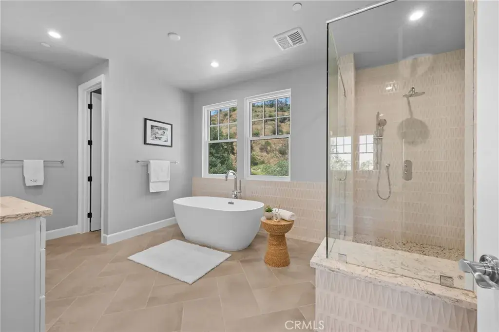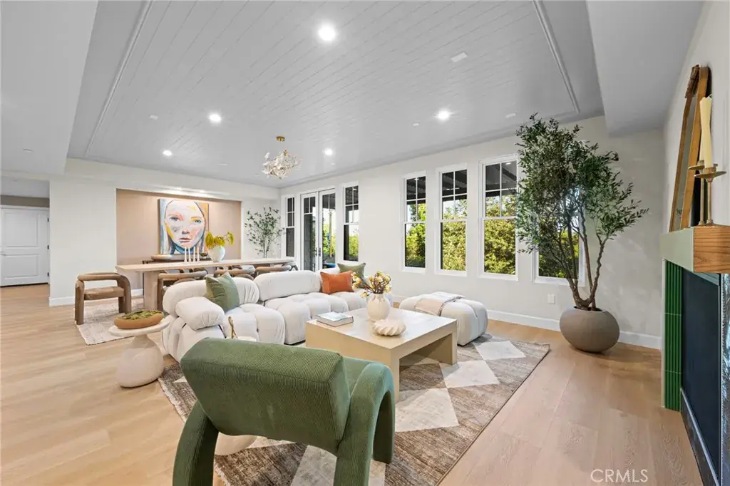 Stepping inside, you’ll discover 3,719 square feet of light-filled living space, including four bedrooms and four-and-a-half baths. Vaulted ceilings soar overhead, while designer light fixtures punctuate each room. The gourmet kitchen is crowned with luxurious quartz countertops and features hallmark Craftsman-inspired details, here executed in a clean, contemporary palette.