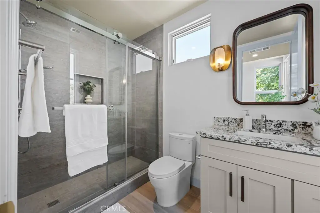 Spanning 3,076 square feet, the home features four spacious bedrooms and four and a half bathrooms. Inside, you’ll find soaring vaulted ceilings, designer lighting, and a gourmet kitchen adorned with luxurious quartz countertops.