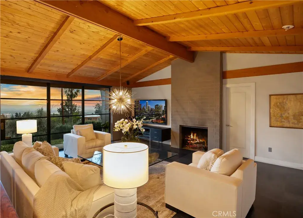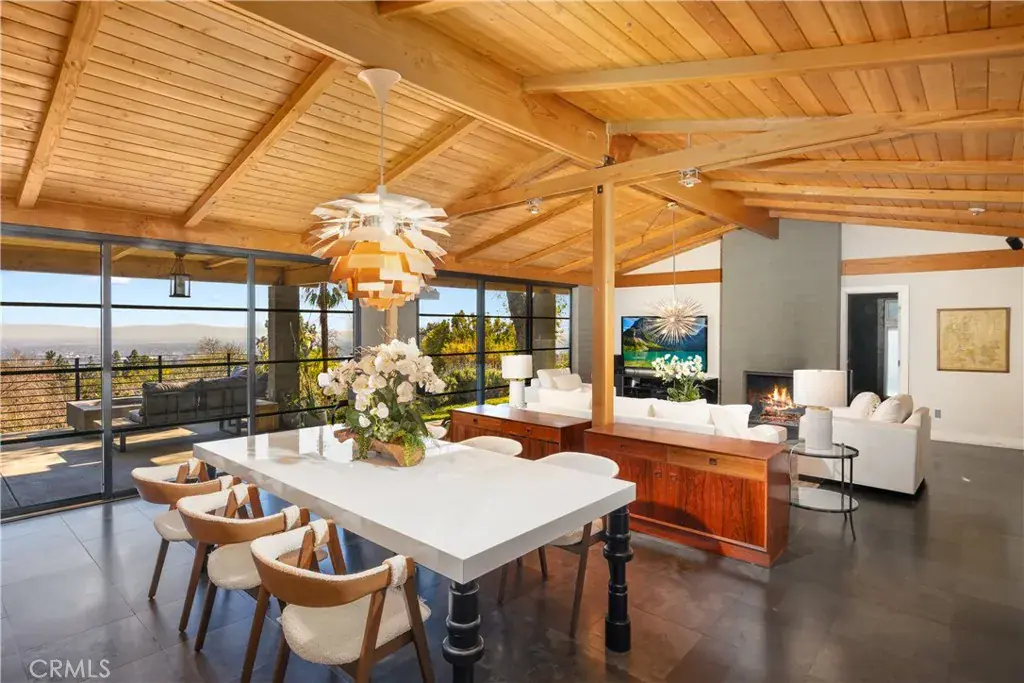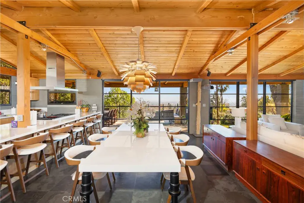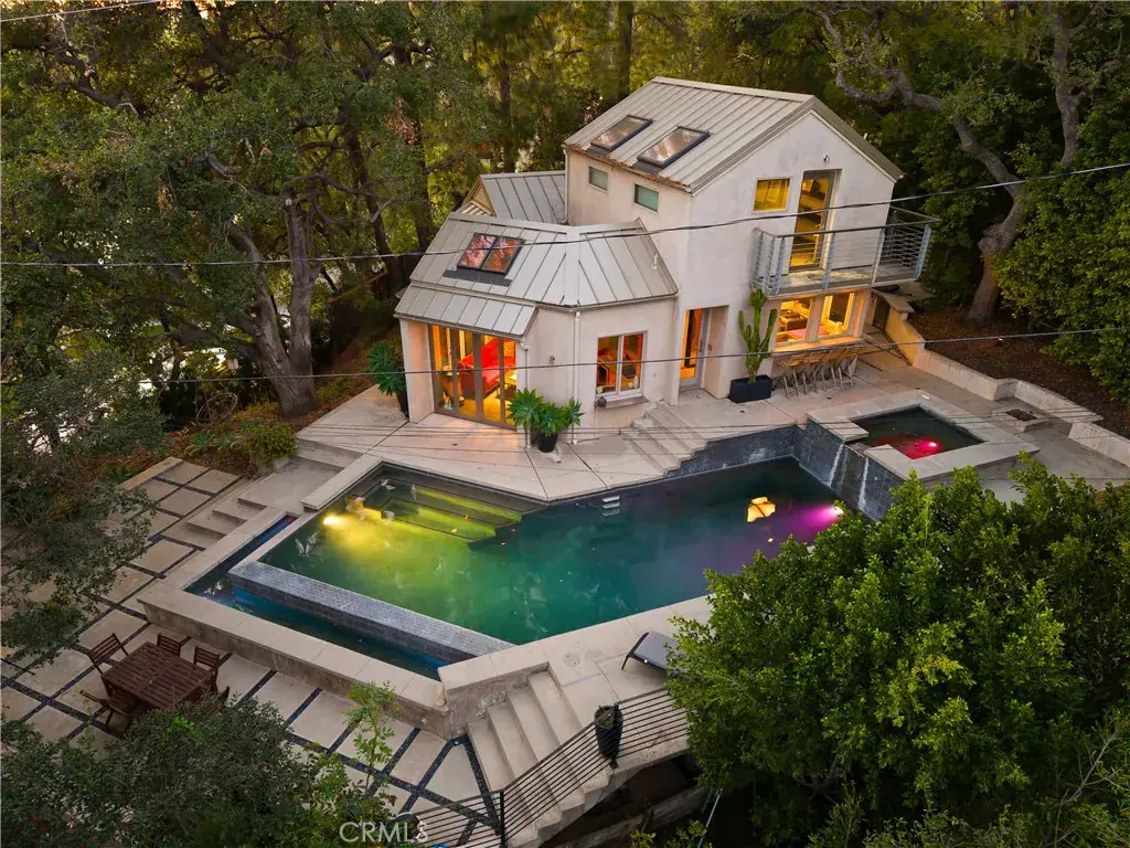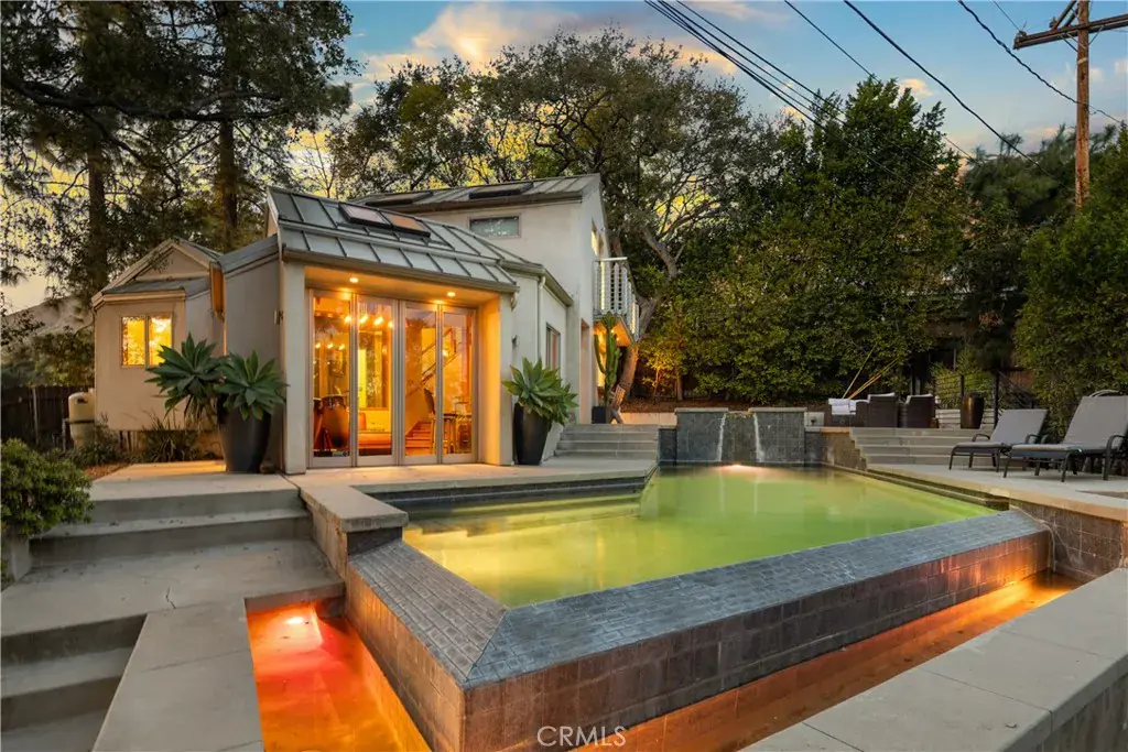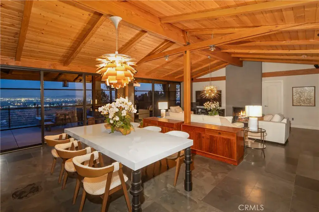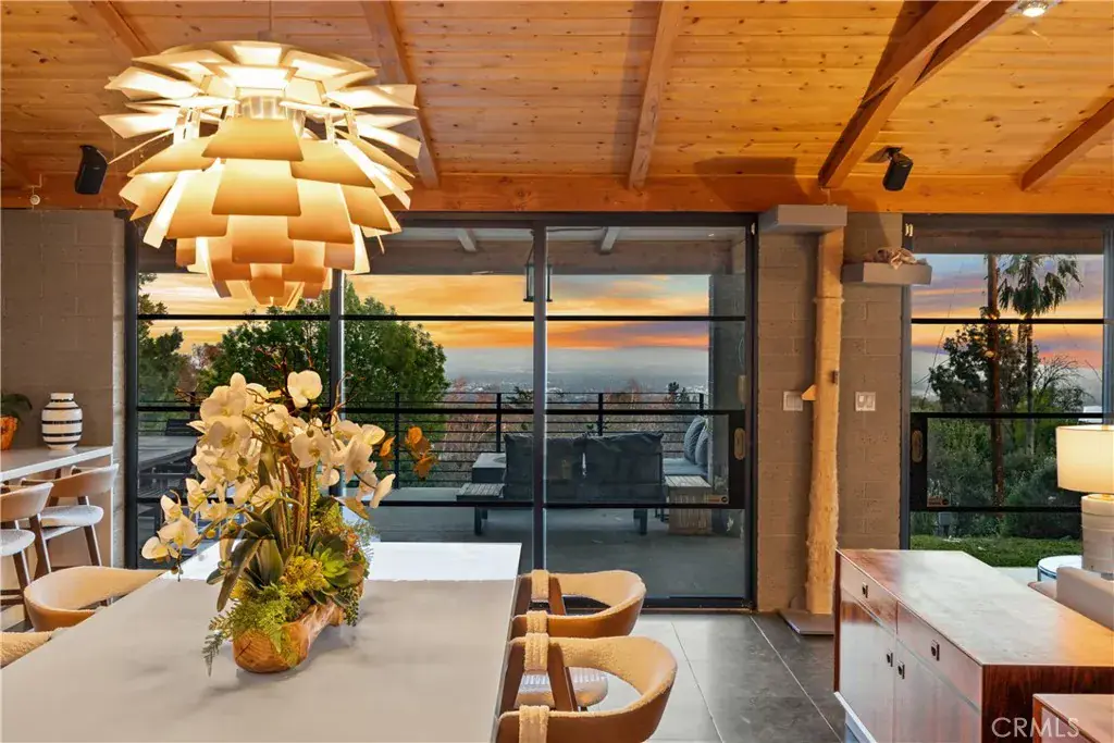 Nestled in the charming and highly sought-after community of Sierra Madre, this exceptional property offers two sophisticated mid-century modern homes on a sprawling lot with breathtaking panoramic views. Designed with architectural elegance and thoughtful details, both residences provide a unique blend of privacy, luxury, and seamless indoor-outdoor living. The primary home is a stunning 3-bedroom, 2-bath retreat that captures the beauty of its surroundings with expansive windows and steel-framed doors that open to a spectacular outdoor balcony. From this vantage point, enjoy sweeping city light views that transform the landscape into a mesmerizing display at night. The spacious family room, dining area, and kitchen are designed for both comfort and entertaining, allowing for a seamless flow of space bathed in natural light. The second home is a beautifully designed 1-bedroom, 1-bath residence that feels like a private sanctuary. With a full kitchen, a generous upstairs loft, and striking architectural details, this detached home is completely gated and offers the feel of an artist’s retreat. Multiple windows and retractable doors bring in an abundance of light, enhancing the connection to the outdoors. The infinity-edge pool adds a resort-like ambiance, making this space a true escape from the everyday. The property also features a two-car carport with ample storage areas, ensuring functionality without compromising design. Set on an expansive lot, this unique offering is a rare opportunity to own a one-of-a-kind property that embraces the beauty of Sierra Madre while providing two independent yet harmonious living spaces. Whether you’re looking for a multi-generational living setup, a guest home, or an inspiring creative space, this estate delivers in every aspect.