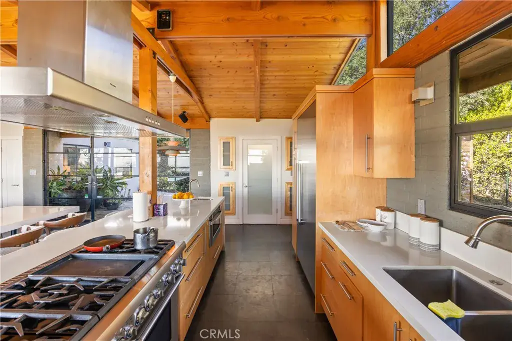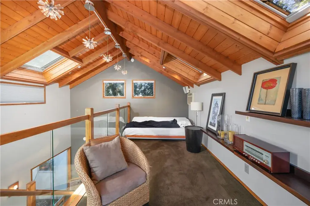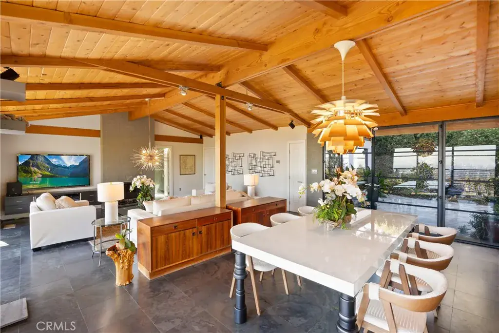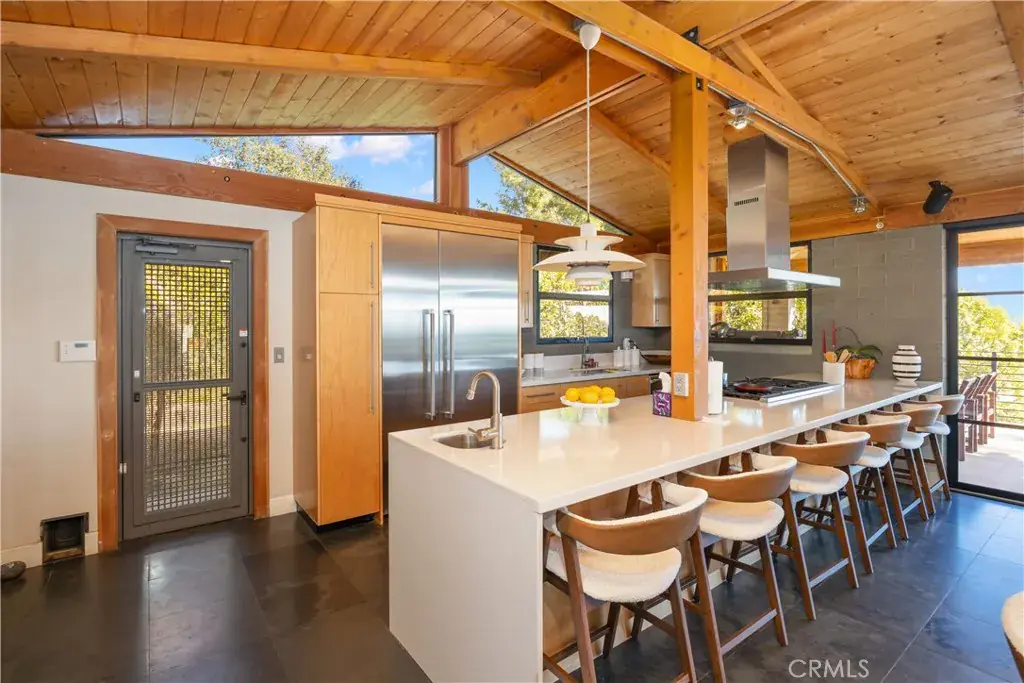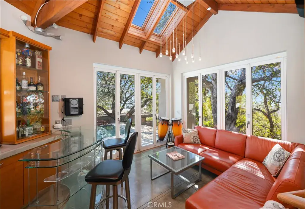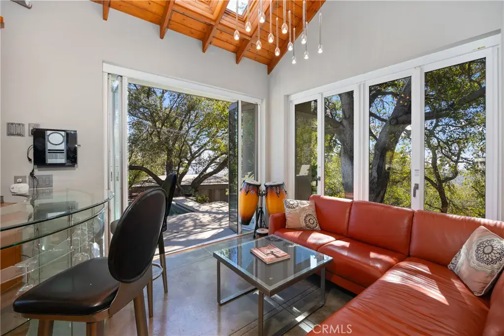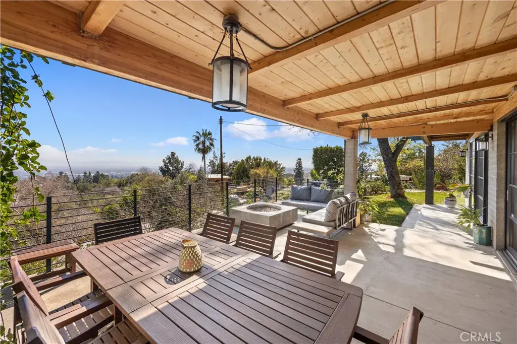 Nestled in the charming and highly sought-after community of Sierra Madre, this exceptional property offers two sophisticated mid-century modern homes on a sprawling lot with breathtaking panoramic views. Designed with architectural elegance and thoughtful details, both residences provide a unique blend of privacy, luxury, and seamless indoor-outdoor living. The primary home is a stunning 3-bedroom, 2-bath retreat that captures the beauty of its surroundings with expansive windows and steel-framed doors that open to a spectacular outdoor balcony. From this vantage point, enjoy sweeping city light views that transform the landscape into a mesmerizing display at night. The spacious family room, dining area, and kitchen are designed for both comfort and entertaining, allowing for a seamless flow of space bathed in natural light. The second home is a beautifully designed 1-bedroom, 1-bath residence that feels like a private sanctuary. With a full kitchen, a generous upstairs loft, and striking architectural details, this detached home is completely gated and offers the feel of an artist’s retreat. Multiple windows and retractable doors bring in an abundance of light, enhancing the connection to the outdoors. The infinity-edge pool adds a resort-like ambiance, making this space a true escape from the everyday. The property also features a two-car carport with ample storage areas, ensuring functionality without compromising design. Set on an expansive lot, this unique offering is a rare opportunity to own a one-of-a-kind property that embraces the beauty of Sierra Madre while providing two independent yet harmonious living spaces. Whether you’re looking for a multi-generational living setup, a guest home, or an inspiring creative space, this estate delivers in every aspect.