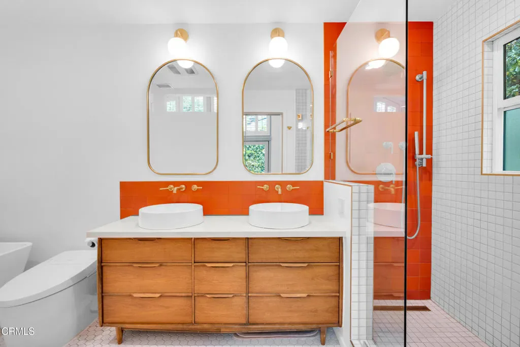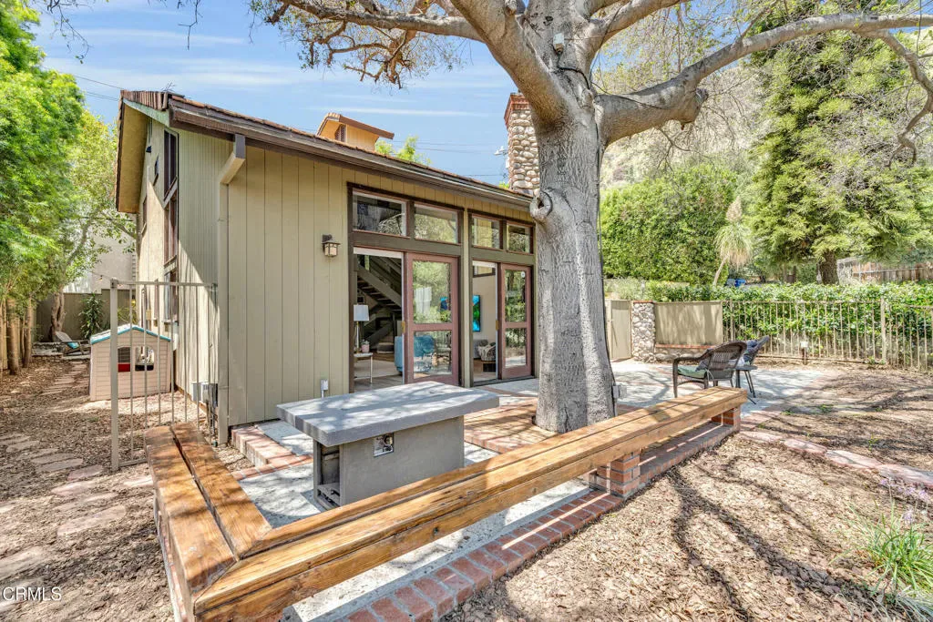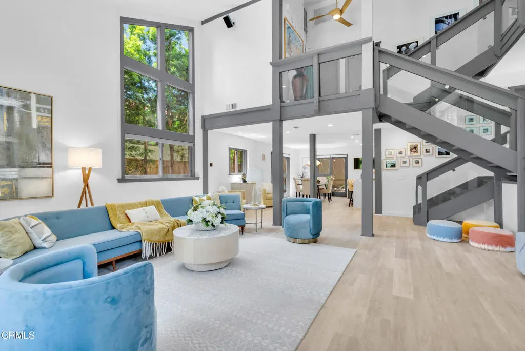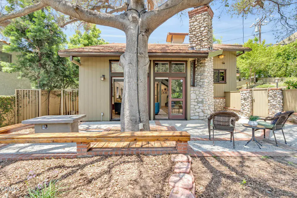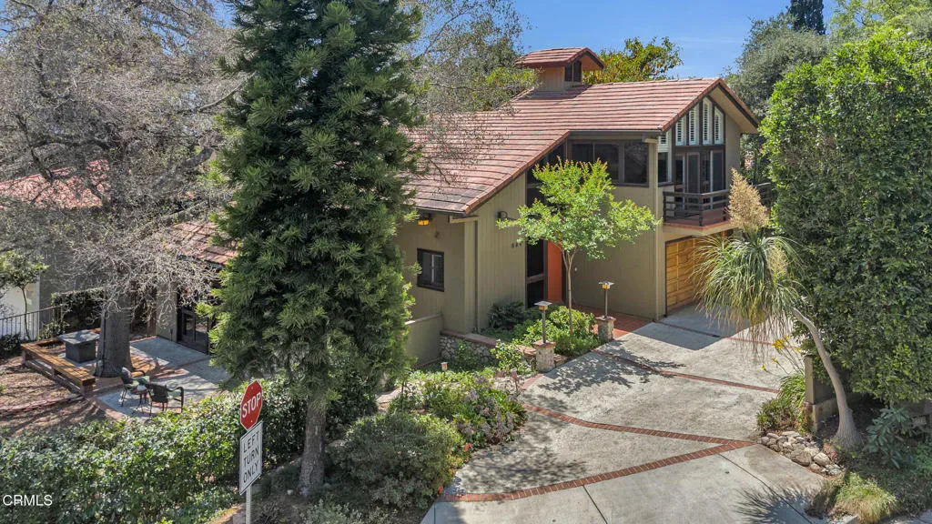 Nestled in the charming Marlborough Terrace neighborhood of Sierra Madre – this timeless modern home awaits. Step into the living room and prepare to be wowed: soaring two-story ceilings and expansive floor-to-ceiling, wall-to-wall windows flood the space with natural light, seamlessly blending the serene outdoors with the refined interior. Lush greenery and breathtaking mountain views complete the picture, creating a tranquil yet dramatic living experience. An open-concept floor plan connects the living room/dining area to a completely remodeled gourmet kitchen, complete with a center island and pantry. Outfitted with modern conveniences, it makes meal prep effortless and enjoyable. A striking open-riser staircase with sleek glass railing enhances the home’s expansive and airy feel. The primary suite delivers the second ‘wow’ factor with its soaring vaulted ceiling and walls of windows that frame breathtaking, therapeutic mountain views. Morning coffee on the private balcony will quickly become a cherished daily ritual. The suite was completely remodeled in 2020 and includes a luxurious spa-like bathroom, a walk-in closet, and custom window shutters. Two additional bedrooms share a balcony, offering more outdoor enjoyment. At the top of the stairs, a large nook provides flexible space for storage or a cozy play area for the children (or favorite pets). All bathrooms have recently been completely remodeled. Just outside the kitchen, an outdoor barbeque area provides the perfect setting for entertaining, whether hosting friends or enjoying intimate family gatherings. Expansive sliding doors from the living room open to a cozy front yard, creating a seamless indoor-outdoor living experience.