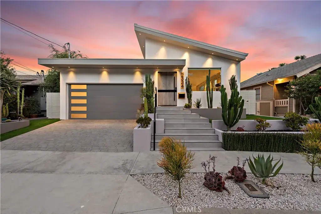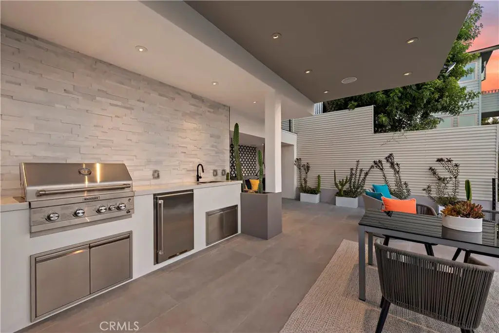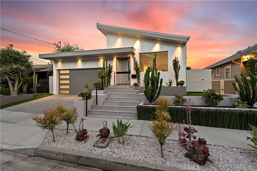 Perfectly sited on a fully manicured, tiered, east-facing lot, the 3-bedroom, 3-bath home features multiple suspended patios that seamlessly extend the living spaces outdoors, including private terraces off the primary suite and kitchen—ideal for al fresco dining and entertaining. Mature succulents and sculptural cactus plantings are thoughtfully integrated throughout the property, creating a refined, low-maintenance landscape with strong architectural presence.