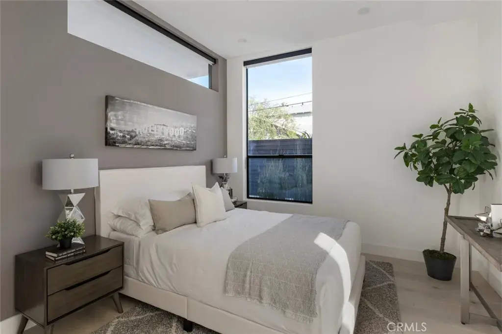 The 2nd floor main living space is one large expansive great room filled with natural light & views of DTLA through soaring 15 ft floor to ceiling windows. There is also a balcony with large patio doors that can be opened to increase your indoor/outdoor entertaining space. A world class exhibition style chef’s kitchen completes the space without overpowering it with graceful, modern cabinetry & custom porcelain counter tops with seating for 6 at the counter.