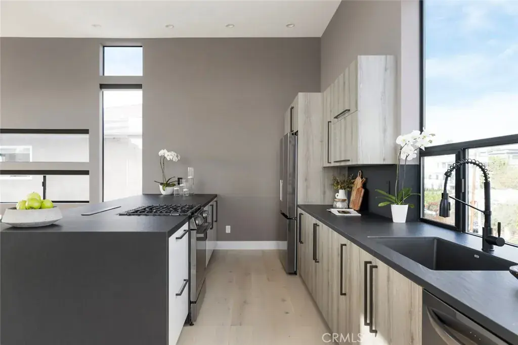 Making your way up the last staircase you will walk out onto your own private rooftop/entertainment/observation lounge. The entire roof was made to hold furniture & friends & comes with an outdoor kitchen. The views from this space are unlimited from downtown, to the Hollywood hills, to the coast & spectacular sunsets every night. You will probably be The Host for all of your of your future dinner/cocktail parties, or just come up to relax and recharge by yourself.