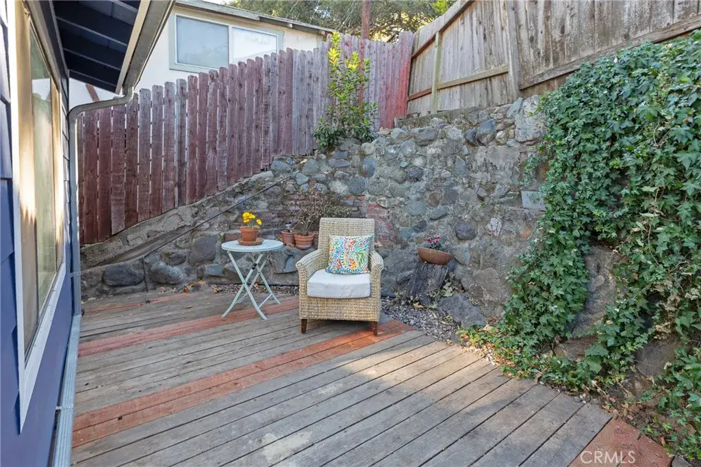 This creekside canyon charmer is a beautifully remodeled home that blends modern upgrades with cozy rustic charm. Enter from the front deck overlooking the tranquil creek and garden. The open floor plan is highlighted by an inviting living room fireplace, perfect for creating a relaxing ambiance. The luxurious remodeled bathroom features a walk-in shower, custom tile, and storage. A unique loft space offers additional space for an office, art studio, workout, or sleeping area. A fully enclosed back yard provides a quiet ambiance, and has additional storage and a wooden deck. The verdant, creekside garden includes a variety of fruit trees including a Haas Avocado. The convenience of downtown Silverado is just a short stroll away, making it easy to get the mail, grab a coffee at the Silverado Kitchen and Market, attend a lively taco Tuesday at the Cafe, or simply greet neighbors and friends. Silverado is a throwback to more gentle times, yet only minutes from all that Orange County has to offer.
