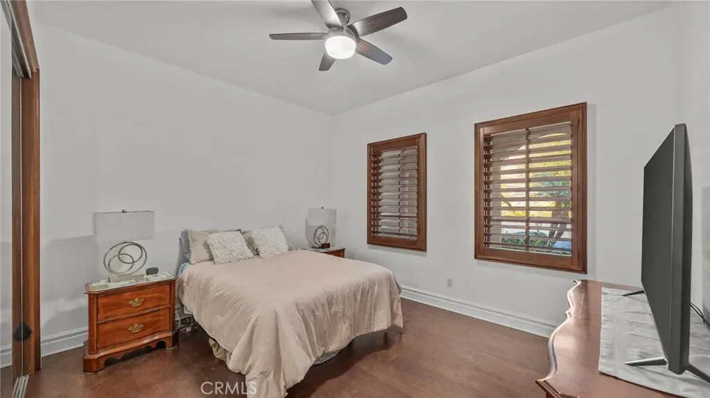 A four-car attached garage (882 sq. ft.) with epoxy floors and sectional steel doors provides ample space for your vehicles and storage needs. Recent upgrades include a fully paid solar system, fresh interior and exterior paint, new pebble-tech pool resurfacing with high-efficiency heater, brand-new hardwood flooring on both levels, updated bathrooms with quartz counters and modern fixtures, and custom wood shutters throughout.