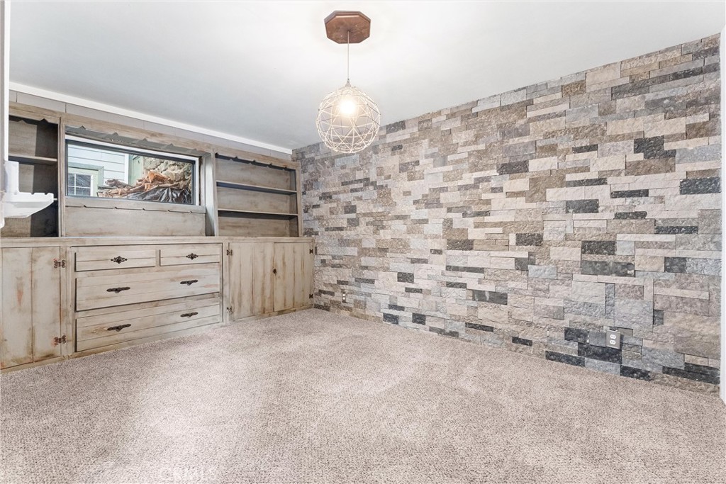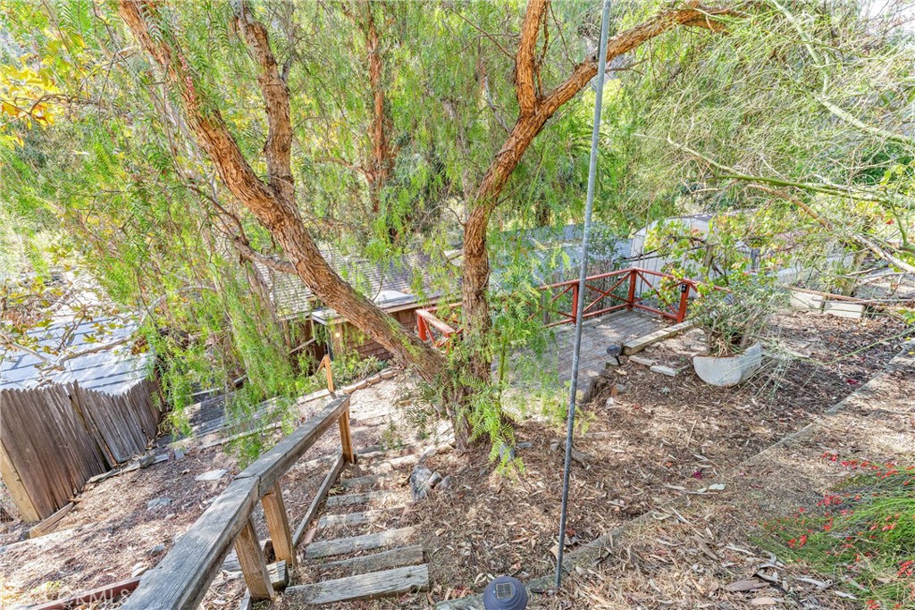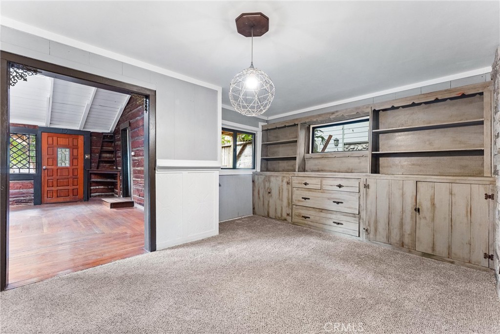 The main floor bedroom is wrapped in windows and includes a vintage built-in dresser, while the updated main-level bathroom has an exterior door for quick access to the side yard, pet area or garden. Upstairs, the additional finished areas provide multiple layout possibilities—ideal as a den, office, creative space or extra sleeping areas, depending on a buyer’s needs. These upper spaces give the home a “retreat level” feel without changing the assessor-recorded count of 2 bedrooms and 1 bath.