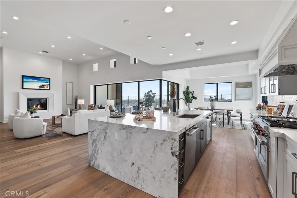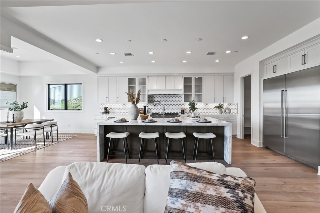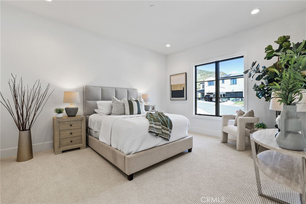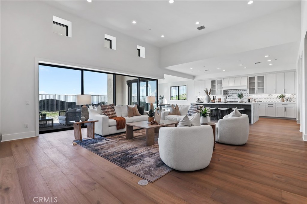 NEW CONSTRUCTION SINGLE STORY LIVING – SUNSET & CITY LIGHT VIEWS- END OF CUL-DE-SAC LOCATION, 17,000 sf+ POOL SIZED LOT within GATED Saddle Crest community PLUS attached ADU with great room, mini kitchen private bedroom, bathroom and walk-in closet. Finished with thousands in designer selected finishes, this price includes folding glass doors, fireplace in great room, upgraded cabinets, WATERFALL ISLAND with Calcutta Umber quartz plus designer selected countertops and surrounds in each bath. Hardwood floors in the great room, kitchen, office and primary bedroom, gorgeous custom Calcutta Umber and wood entry floors, and upgraded tile flooring in bathrooms and oversize laundry room. Semi-custom construction with the highest standard of living for the discerning home buyer, like casement windows, his and her closets in the primary room. The amazing gourmet kitchen with designer selected split finish kitchen full box with self closing cabinets, island with sink, breakfast bar, quartz countertops with gorgeous marble and tile backsplash, two dishwashers, 72 inch refrigerator, Wolf gas range and oven, pot filler, huge walk in pantry, plus a casual dining and formal dining room. The primary suite includes a huge, spa inspired shower & soaking tub plus two huge walk-in closets. This home has just completed construction and is a MUST SEE!