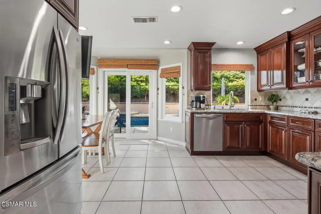 Welcome to this beautifully appointed 4-bedroom, 3-bathroom home in the desirable Indian Hills Ranch, north of the 23 FWY and near Simi Hills Golf Course. Offering approximately 2,295 sq ft, this well-designed floor plan features a convenient downstairs bedroom and full bath, ideal for guests or multi-generational living. Enjoy separate living and family rooms, a formal dining room, and a spacious eat-in kitchen with granite counters and updated cabinetry. The home is enhanced by dual-pane windows and owned solar for energy efficiency. Upstairs, the primary suite offers a cozy fireplace, large en-suite bath, and dual closets, along with two additional bedrooms and a recently updated bath. Step outside to a private backyard oasis with a stunning pebble-tec pool and spa, plus large RV access and an attached 2-car garage–perfect for both relaxation and functionality.