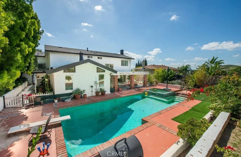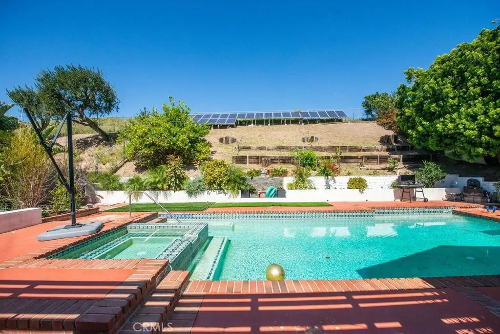 Gorgeous Large Family House with a Pool and ADU!! The Main house is a five bedroom 3 bath home with four bedrooms upstairs and one downstairs. It features an open floor plan with recently remodeled kitchen and bathrooms. It also has Central heating and air conditioning, Dual pane windows, Owned Solar power production, High wood beam ceilings, Pool, Two fireplaces, Fruit trees and two covered patios. The ADU has its own entrance and is attached to the main house but doesn’t allow access. It is a Two bedroom and Two bath unit this is approximately 1000 sq. ft. . It is perfect for a rental income or keeping family close. This home is Located North of the 118 freeway close to many different shopping centers and parks.