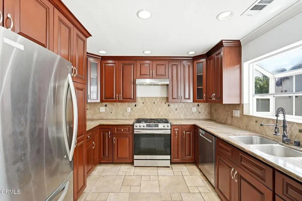Welcome to 2082 Belgrave Court in Simi Valley, a beautifully upgraded single-story home that blends comfort and functionality. Freshly repainted inside, this home feels bright, clean, & move-in ready from the moment you step through the door, just awaiting your finishing touches!The kitchen has been tastefully refreshed with refinished and richly stained solid wood cabinetry, complemented by sleek granite countertops and tile backsplash. Additional storage & counter space have been smartly added to the breakfast nook, creating a highly functional layout perfect for both daily living & entertaining. Crown moulding and recessed lighting elevate the interior, adding a touch of sophistication to the living spaces.Originally a 4-bedroom home, the layout has been reimagined into 3 bedrooms to enhance the primary suite; now featuring an expansive walk-in closet with custom built-in organization, along with a spacious en-suite bathroom complete with a double vanity. Dual pane windows throughout the home provide energy efficiency & comfort year-round with near new HVAC.Outside, both the front & rear yards are finished with low-maintenance artificial turf & fully enclosed with durable vinyl fencing or cement block wall, offering privacy, durability & ease of upkeep. The garage includes convenient laundry hookups, & the single-story layout ensures effortless living with no interior stairs.Ideally situated on a quiet cul-de-sac street, this home is walkable to nearby schools and a beautiful park just steps away with awesome frisbee golf, walking trails, and beautiful mature trees. Enjoy the convenience of close proximity to shopping, dining, & easy freeway access – making everyday living as seamless as it is enjoyable!This is a thoughtfully upgraded home in a desirable Simi Valley location that’s ready for its next owner to enjoy!