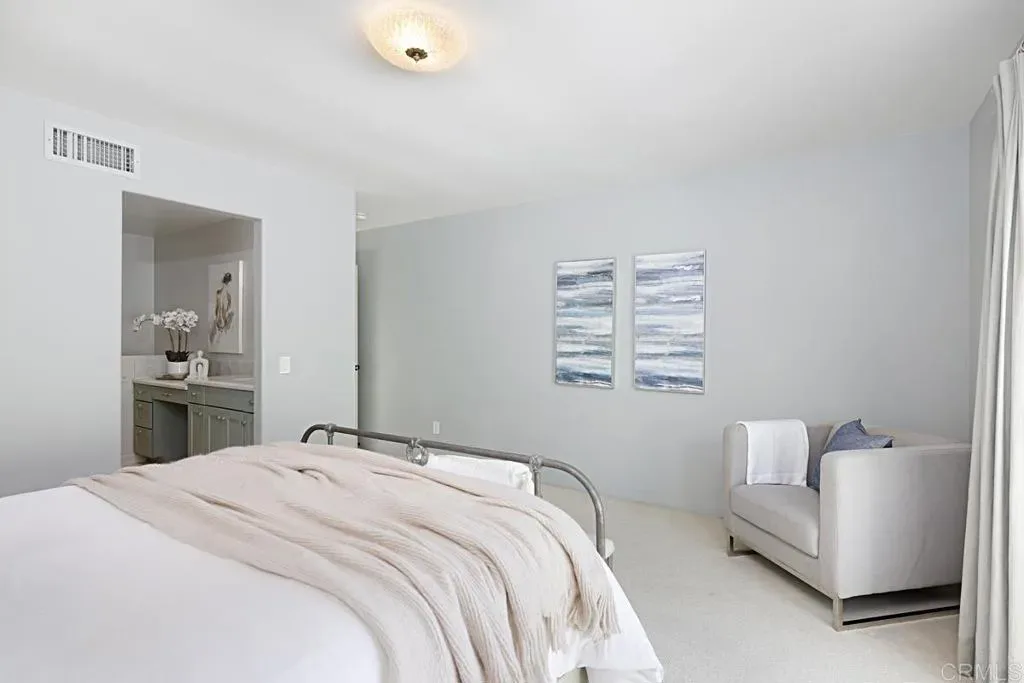 GOLF COURSE FRONTAGE AND MINUTES TO THE BEACH! OFFERED FURNISHED $8,250 OR UNFURNISHED $7,950 ~ Beautiful, single-level gem overlooking the 18th fairway! Experience the perfect blend of comfort and serenity in this one-of-a-kind villa in Solana Beach’s esteemed Lomas Santa Fe Country Club community, conveniently located between the beaches and Rancho Santa Fe. This 2BR + den/loft, 2BA home on a private cul-de-sac is offered fully furnished, turn-key, with exceptional living accommodations. Boasting an open and spacious floor plan with voluminous ceilings and large clerestory windows, the home is filled with abundant natural light and an airy, bright atmosphere. The home has been updated, featuring remodeled bathrooms, high-end appliances, and designer touches, including beautiful wide plank and low-maintenance wood flooring throughout. The central fireplace enhances the living area, creating a cozy atmosphere for daily use and entertaining. There’s a versatile den/media room off the living room, perfect for a home office or flex space. The updated kitchen features a Thermador gas range, custom wood cabinetry, and ample storage. The private primary bedroom boasts an open, spacious bathroom complemented with a walk-in shower and closet. The primary bedroom features a private patio, providing a serene spot for morning coffee, afternoon reading, or peaceful meditation. The attached two-car garage offers direct access and ample storage space.