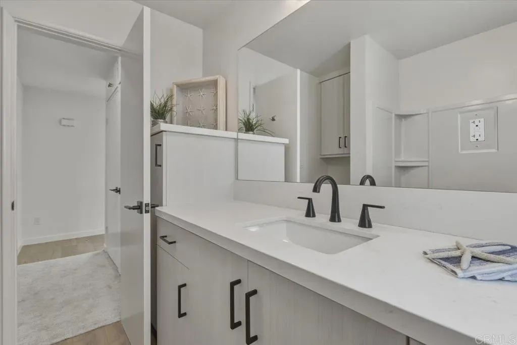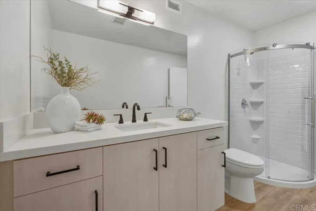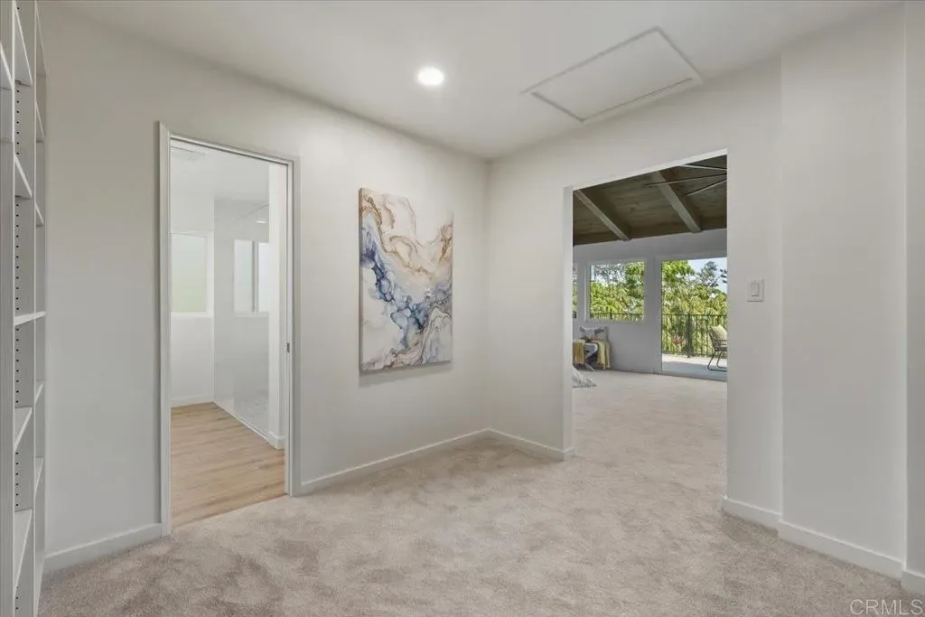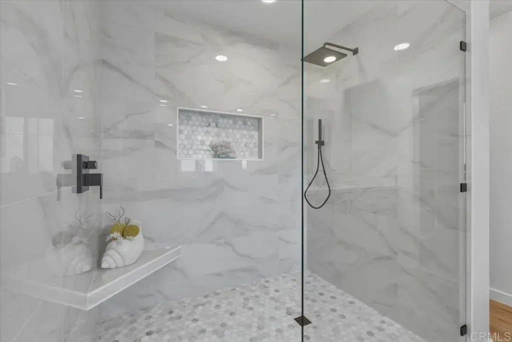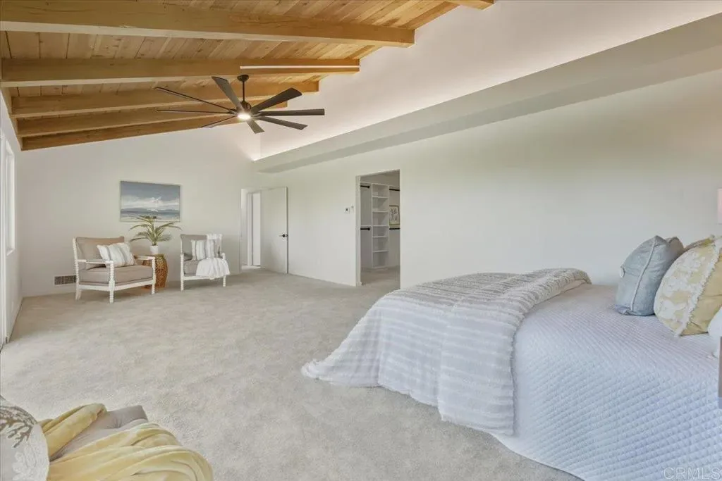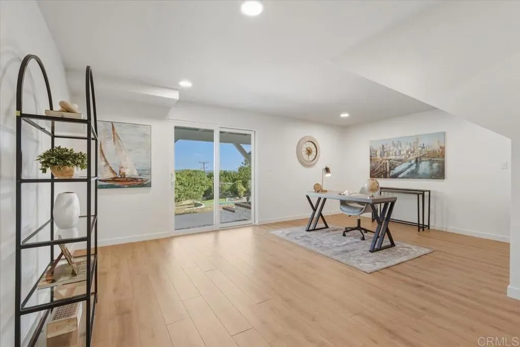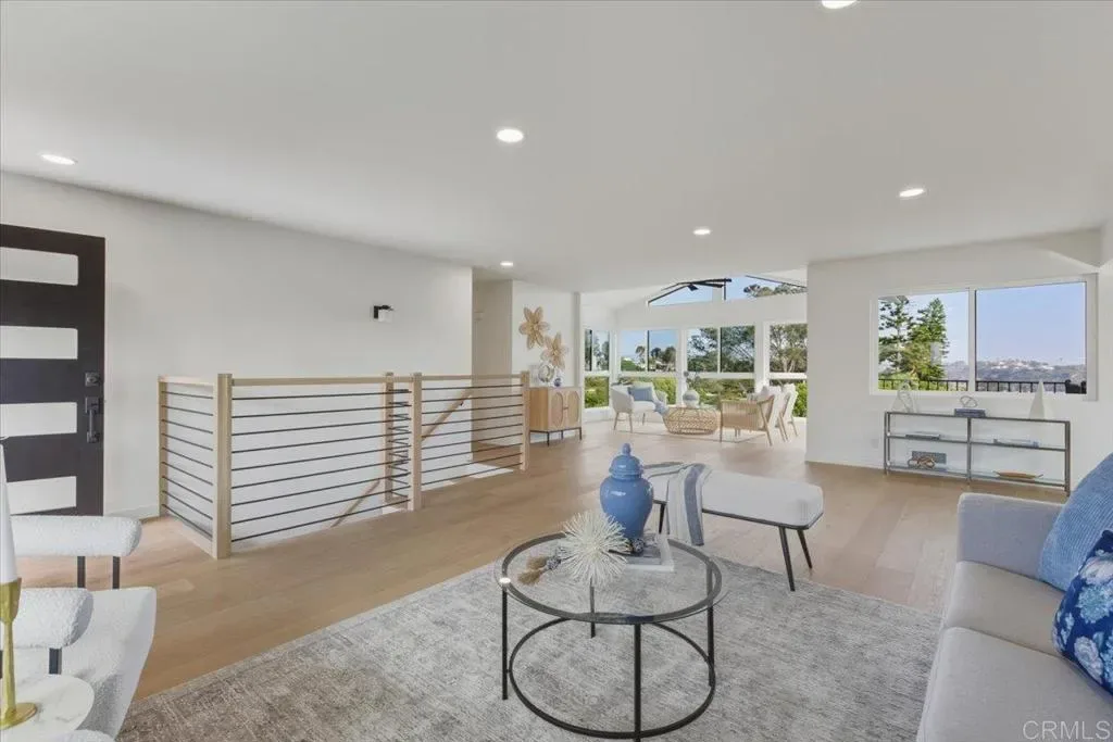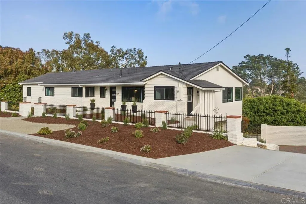 Rare opportunity to own an exceptional property located West of I-5 in the wonderful coastal community of Solana Beach. Situated high up on nearly 1/2 acre, this ranch-style property offers remarkable space & privacy. Thoughtfully updated throughout, this fully renovated 4 bed, 4 bath, 3702 sq ft home features NEW flooring. NEW Milgard windows & front door. NEW paint inside & out. As you enter, you’ll immediately appreciate the open panoramic views, a welcoming and spacious living room, a charming Sunroom with its own deck, and the fully renovated galley-style kitchen with all NEW appliances. The impressive Primary Suite has a gorgeous NEW bath and an expansive 300 sq ft deck. As you head downstairs, you’ll find 3 large rooms providing true Flex space…whether it’s a home office, family den, game room, home gym, or an additional bedroom…you decide based on what works for YOUR lifestyle and needs! Plus, there is 650+ sq ft of unfinished attached space (not part of the sq. ft total), with a private entrance. Built out, this would be an ideal Junior ADU (requires city approval). The house also has NEW heaters, an oversized double garage, a carport, and 2 driveways! The large, very private, expansive backyard features peaceful amphitheater views to the South, an updated Sports ‘Pickleball’ Court, a fire pit for evening gatherings, mature landscaping, and ample gardening space. The generously sized lot has plenty of room for a potential detached ADU (buyer to verify with the city) or other resort amenities like a pool, spa or even an expansive artificial turf golf area! An idyllic, quiet neighborhood, conveniently located near top-rated schools, the Cedros district, dining & shopping along the Coast Highway, the Coaster train and Fletcher cove, one of the best beaches in North County. Don’t miss this opportunity.