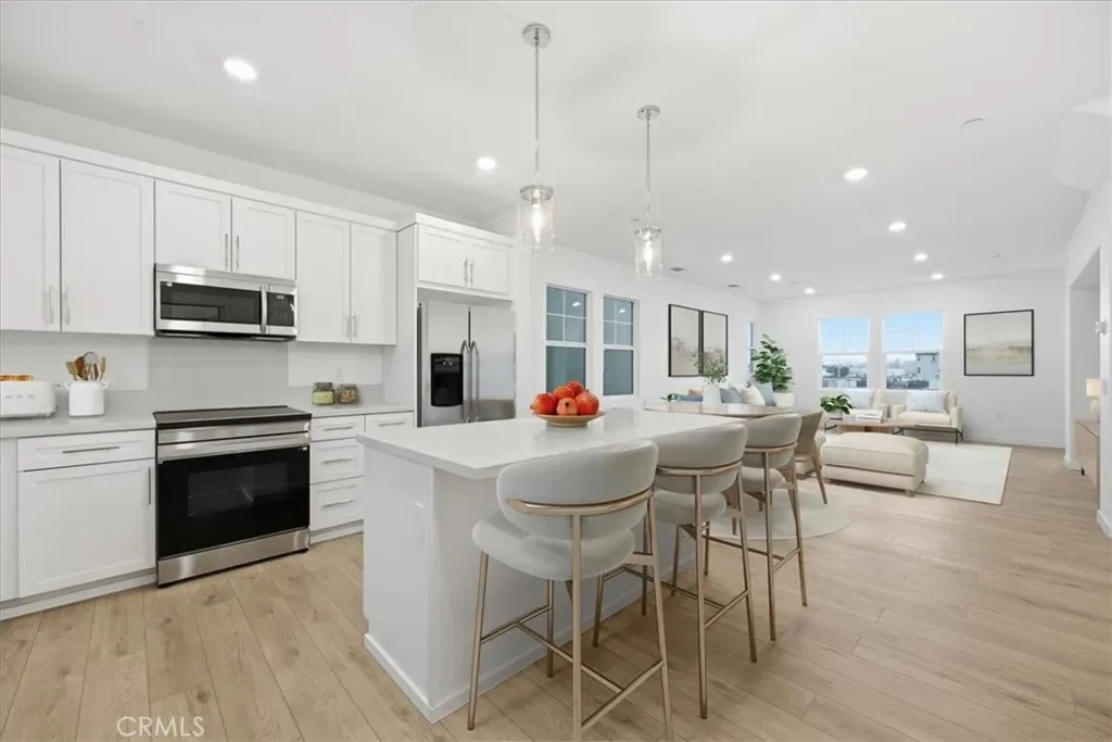 The first level features a private bedroom and full bathroom, perfect for guests, a home office, or extended family. Upstairs, the open-concept main living area is filled with natural light and designed for effortless entertaining. The stylish kitchen includes a spacious island, walk-in pantry, and seamless flow into the dining and living spaces.