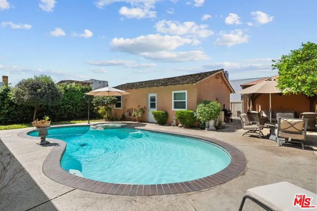 Welcome to this beautifully updated entertainer’s dream in the heart of South Gate! Boasting 2,084 square feet of living space on a massive lot of over 8,000 square feet, this property has room for it all. Currently configured as a spacious 2-bedroom, 2-bathroom layout with generously sized bedrooms and abundant closet space offering the seamless option for an easy 3rd-bedroom conversion to suit your growing needs. Step inside to discover a bright, flowing floor plan enhanced by top-to-bottom renovations, including fresh interior paint, new flooring, new interior doors, elegant new window shutters, and energy-efficient dual-pane windows. The home features a formal living room and a large formal dining room, perfectly complementing the beautifully updated kitchen that boasts brand-new cabinetry and pristine countertops.The true highlight of this property is the expansive den, an ultimate entertainer’s paradise complete with a cozy fireplace and a built-in bar. From here, open the doors and step out into your private backyard resort. A newly plastered, sparkling pool outfitted with brand-new equipment awaits, alongside a dedicated pool cabana that is ready for warm summer days. You can easily host unforgettable family gatherings and BBQs under the new patio cover, accented by gorgeous flagstone flooring that ties the whole outdoor oasis together.Enjoy year-round comfort and peace of mind with a brand-new central HVAC system. Furthermore, the property features an expansive oversized custom designed three-car garage with a separate cemented area that includes plumbing already set up, presenting incredible potential for an Accessory Dwelling Unit (ADU) for extended family or passive rental income. Conveniently located close to fantastic shopping, local parks, and schools, this turnkey property perfectly captures the very best of South Gate living. Don’t miss this rare opportunity to make this spectacular home your own!