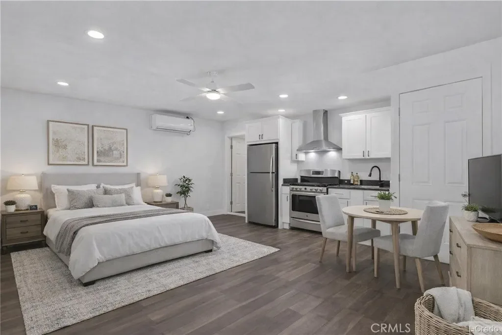 Step inside to discover an inviting open floor plan that seamlessly connects the living, dining, and kitchen areas. The home features a convenient in-unit washer and dryer, making laundry days a breeze. Stay cool during the warm California summers with the efficient mini split air conditioning system.