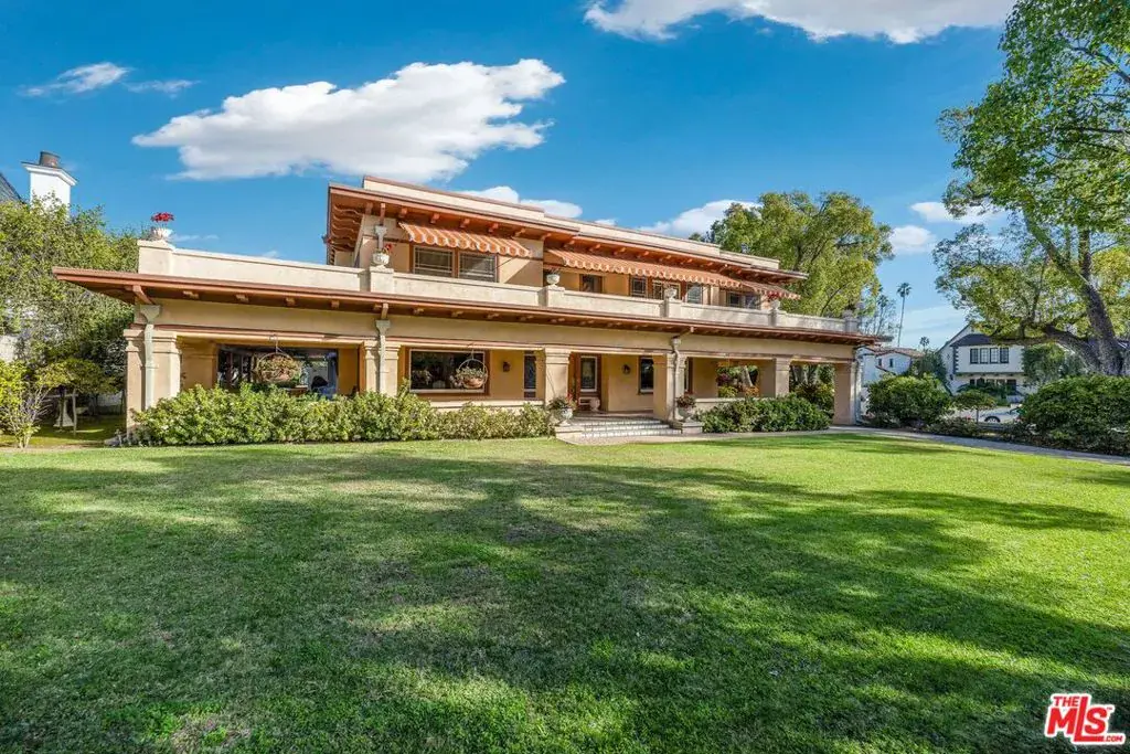 Rare find 20th century Craftsman/Contemporary style home built in 1913 that was part of the grand estates in the highly sought after Millionaire’s Row Area in South Pasadena. The home sits on an expansive 20,863 sq. ft. corner lot. With the incredible curb-appeal, you are invited into the home from a full length gracious porch. As you enter the home, the entry way and cozy seating area greets you and opens to a bright main living area with abundant natural light. The home features an expansive living room with gas fireplace and a picturesque window, a family room and spacious formal dining room with built-ins cabinetry and stained window casings. Kitchen has a stove top, Butler’s pantry and a separate breakfast room. Laundry room is adjacent to the kitchen and opens to the rear patio. There is a half bath/powder room on the first floor and a basement which is perfect for storage. From the Butler’s pantry, you will find a separate stairwell leading to the maid’s quarters with 2 bedrooms and a tub. The beautiful main staircase has a first tier landing that leads to the maid’s quarter and the second tier landing boasting 4 bedrooms. The grand master suite has a large sitting area that opens to the enormous balcony. Also, a bathroom with separate shower and tub and a beautiful walk-in closet with built-ins. Three Additional spacious bedrooms and 1 bath complete this floor. Hardwood floors throughout, large crown moldings, built-in cabinetry and book cases are just some features that this house offers. Enjoy gatherings on the charming & lengthy side patio under a pergola with cascading vines. Towards the rear is the gated sparkling swimming pool with several sitting areas for entertaining and relaxing surrounded with lush planting. A separate, private & cozy guest house next to the garage consists of 1 bedroom, kitchen, dining area, living room with fireplace and its own private yard. Two separate driveways provide easy access to and from the street. The Port-Cochere is convenient for easy drop off that leads to the long pavers driveway. Beautiful home that needs updating with spectacular landscaped grounds and is minutes away from Rose Bowl, museums with easy freeway access and plethora of shopping, dining and boutiques in Old Town Pasadena. This home provides a quality lifestyle in a prime, gorgeous neighborhood setting. Not to be missed.