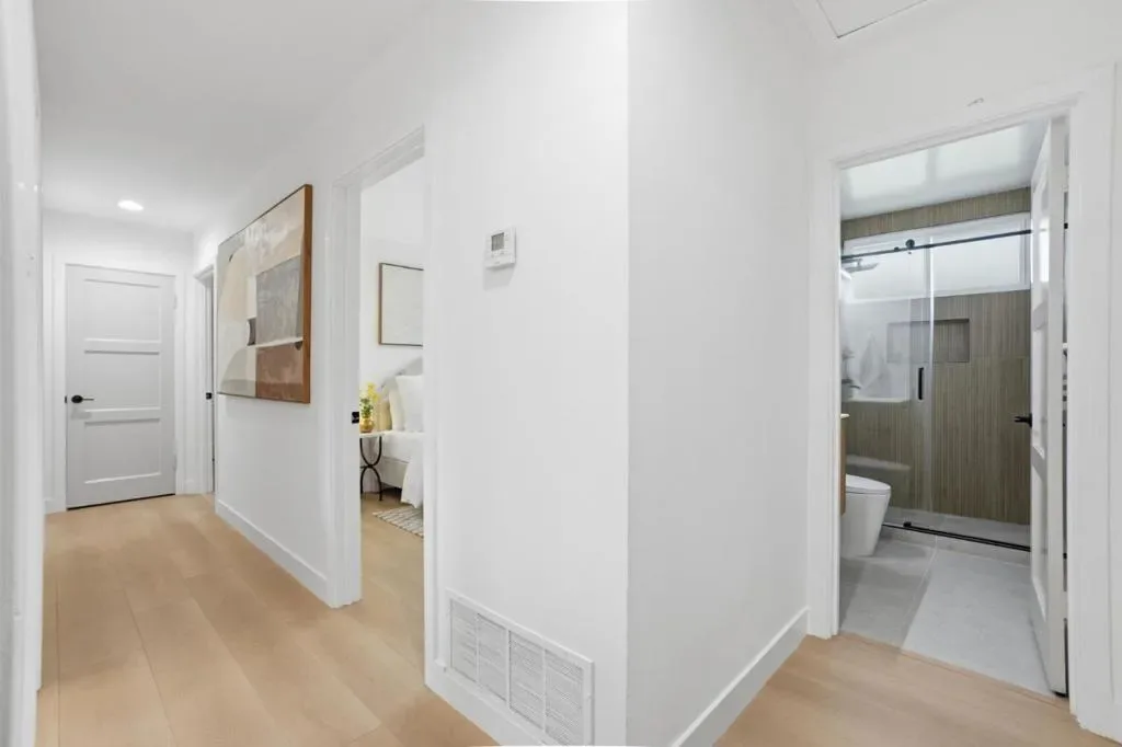 Perfectly positioned overlooking the serene Brentwood Park, this beautifully updated residence blends modern sophistication with everyday comfort. The home features a bright, open-concept layout complemented by a brand-new gourmet kitchen and stylishly remodeled bathrooms. Wake up to tranquil rose garden views from the bedroom, and enjoy the convenience of a spacious two-car garage. The private, manicured backyard serves as a secluded sanctuary, offering the ultimate setting for outdoor relaxation and effortless entertaining.