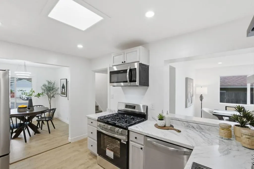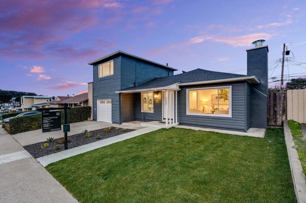 Welcome to 227 Wicklow Dr, a beautifully renovated 3-bedroom, 2-bath home with a bonus 4th bedroom on the top floor, in the heart of South San Francisco. This 1,630 sq ft residence features a brand-new roof, dual-pane windows, recessed lighting, a cozy fireplace, breakfast room and a formal dining area. The modern chefs kitchen boasts stainless steel appliances and a gas stove, while the primary suite offers a spa-like bath and walk-in closet. Enjoy a private backyard and year-round comfort with brand new central heating. Move-in ready and not to be missed!