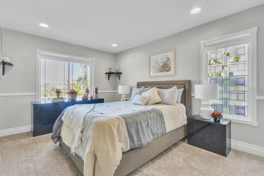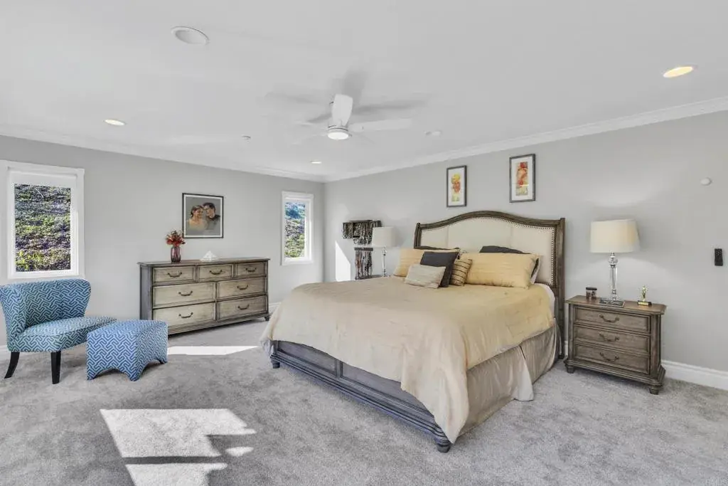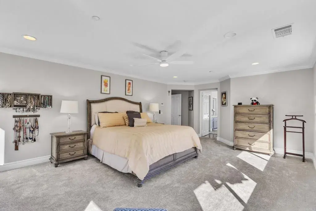 Beautiful 4BD/3BA home in the gated Lakeview at Highlands Ranch community, just minutes from San Diego. This hilltop residence offers soaring vaulted ceilings and breathtaking views reaching all the way to the Coronado coastline on clear days. Features include a full bedroom and bath on the main level, dual-zone HVAC, and a bright, open living area. The home was refreshed just three years ago with new interior paint, quartz and granite countertops, and modern finishes throughout. Energy-efficient with 20 solar panels under a long-term contract at a low 22.5¢/kWh. Enjoy resort-style community amenities including a pool, playground, scenic hiking and walking trails, plus ample street parking. Your new home awaits—don’t miss this opportunity!