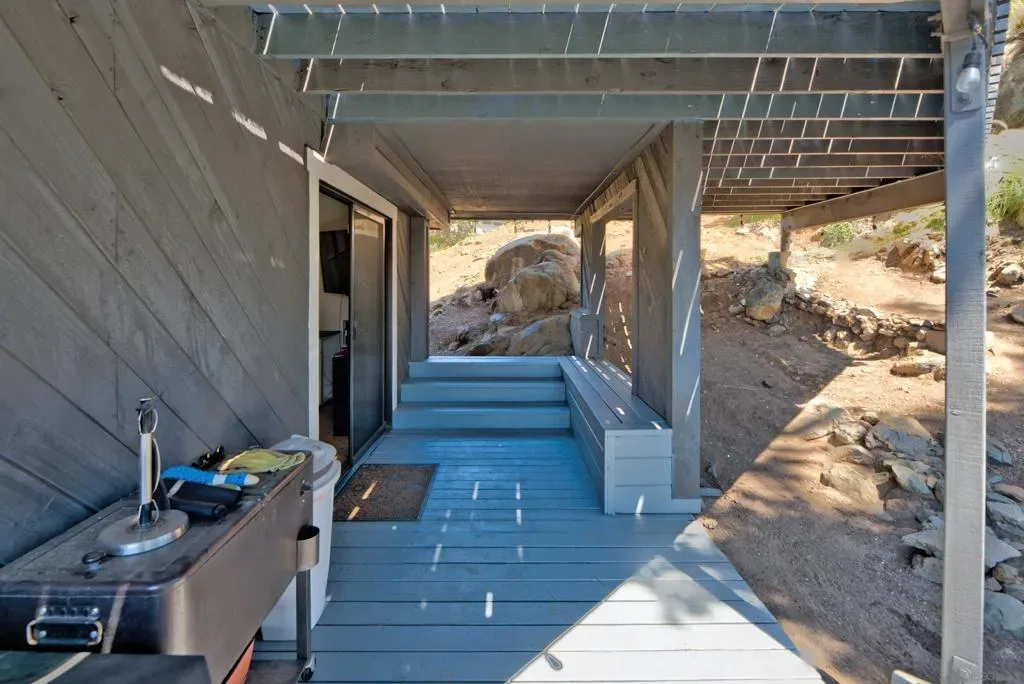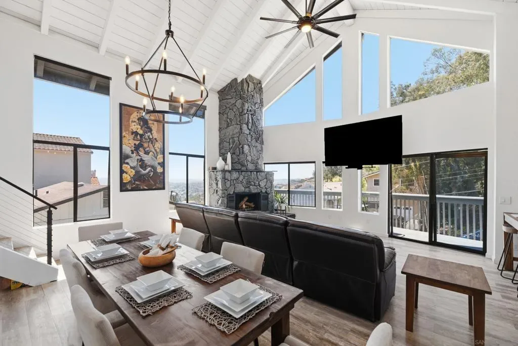 Perched high above Sweetwater Reservoir in the coveted Dictionary Hill neighborhood, this one-of-a-kind architectural retreat offers the rare feeling of living in your own private treehouse—where sweeping panoramic views stretch from the reservoir to the Pacific Ocean, and a cool ocean breeze flows year-round. Designed to impress, the dramatic living room showcases soaring 25-foot exposed beam ceilings, expansive two-story windows that flood the space with natural light, a stunning stone fireplace, and a private balcony perfectly positioned to capture the surrounding scenery. The renovated kitchen blends luxury with functionality, featuring sleek quartz countertops, soft-close cabinetry and pull-out drawers, an oversized center island with abundant storage and recessed lighting. High-end appliances include a Sub-Zero refrigerator, Viking wine fridge, Viking beverage fridge, and a newer Viking dishwasher – ideal for both everyday living and entertaining. The top floor is dedicated to an exceptional primary suite retreat, offering unmatched privacy and breathtaking views. Enjoy your 2 separate, private decks, skylights, custom California Closet system, and motorized shades—creating a serene escape above it all. Two additional spacious bedrooms on the main level each feature direct access to private decks, extending indoor-outdoor living throughout the home. See Supplement section for additional insight! Thoughtful upgrades elevate every corner, including fresh interior paint, modern lighting and hardware, ceiling fans throughout, custom solar shades, new stair railings, upgraded electrical for seamless TV mounting, and a striking Precision garage door. Additional enhancements include a whole-house PureAgain water filtration and alkaline system, Blink and Ring security system, new skylight, and drought-tolerant refreshed landscaping. Energy efficiency meets sustainability with 16 fully paid solar panels, keeping utility costs low while maximizing comfort. A rare opportunity to own a truly distinctive home that combines bold architectural design, modern luxury, and an unbeatable indoor-outdoor lifestyle—all just minutes from San Diego amenities. Move-in ready and eligible for FHA and VA financing. Come live the dream!
