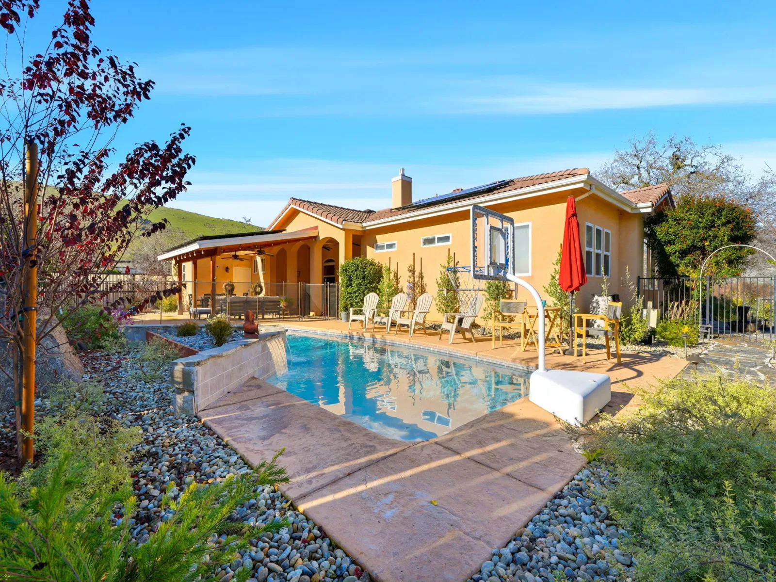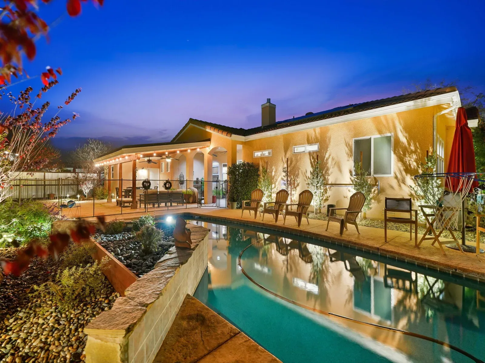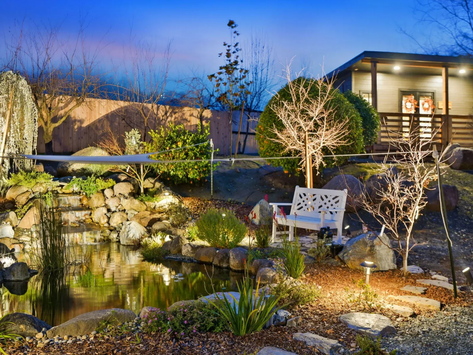 Welcome to your Springville retreat where comfortable living meets income-producing opportunity. This beautifully updated 2186 square foot home sits on a fully fenced one acre lot behind an automatic wrought-iron entry gate and includes two charming, consistently booked Airbnb cabins generating an average of $3300 per month. The main residence offers 3 bedrooms, 2.5 baths and showcases brand new laminate flooring, fresh interior paint, granite countertops, farmhouse sink, Cafe Series stainless appliances, double ovens, new lighting and plumbing fixtures throughout. The open-concept kitchen flows seamlessly into the den and breakfast area, complimented by a butler’s pantry, formal dining room and two fireplaces – one in the living room and another in the den. The primary suite features a walk-in shower and walk-in closet, while the home also includes a 3 car garage, owned solar, pool and a beautiful covered patio with outdoor built-in BBQ grill perfect for entertaining. Outdoors you’ll find welcoming landscaped grounds with lighting, a serene pond with waterfall, two separate firepit areas, and complete perimeter fencing offering privacy and security. The two detached Airbnb cabins are true gems- each with a kitchenette, fireplace, private deck and steady short-term rental history, making this property ideal for multi-generational living, guest accommodations or passive income. This is more than a home-it’s a lifestyle, an investment and a rare Springville opportunity all in one!