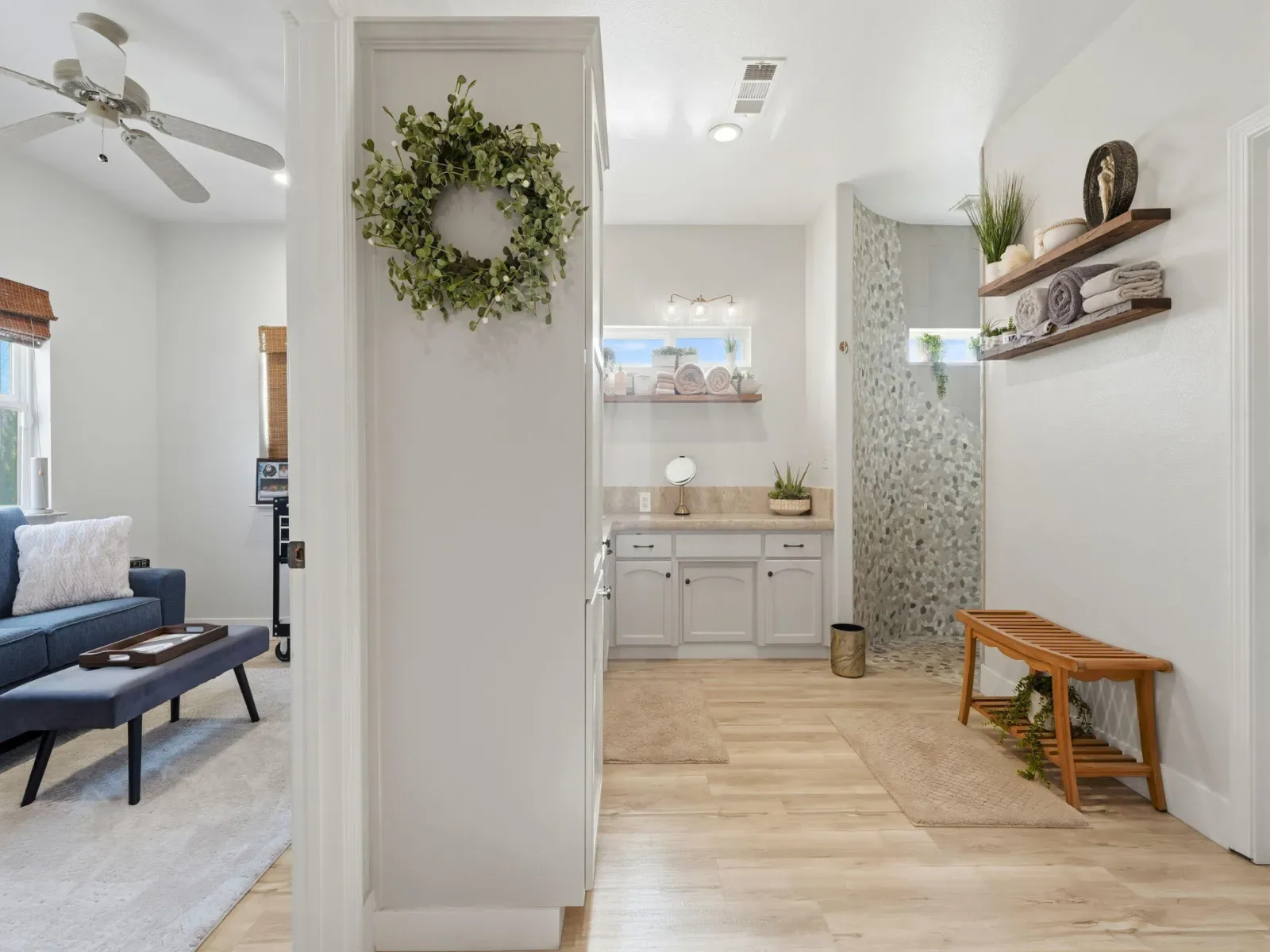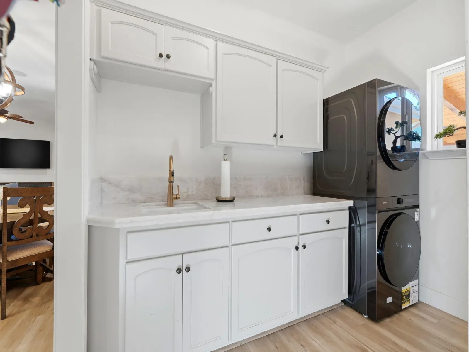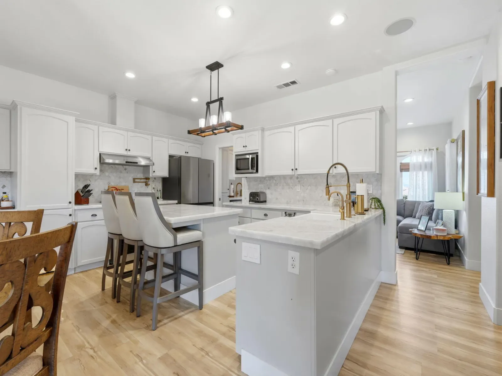 Welcome to your Springville retreat where comfortable living meets income-producing opportunity. This beautifully updated 2186 square foot home sits on a fully fenced one acre lot behind an automatic wrought-iron entry gate and includes two charming, consistently booked Airbnb cabins generating an average of $3300 per month. The main residence offers 3 bedrooms, 2.5 baths and showcases brand new laminate flooring, fresh interior paint, granite countertops, farmhouse sink, Cafe Series stainless appliances, double ovens, new lighting and plumbing fixtures throughout. The open-concept kitchen flows seamlessly into the den and breakfast area, complimented by a butler’s pantry, formal dining room and two fireplaces – one in the living room and another in the den. The primary suite features a walk-in shower and walk-in closet, while the home also includes a 3 car garage, owned solar, pool and a beautiful covered patio with outdoor built-in BBQ grill perfect for entertaining. Outdoors you’ll find welcoming landscaped grounds with lighting, a serene pond with waterfall, two separate firepit areas, and complete perimeter fencing offering privacy and security. The two detached Airbnb cabins are true gems- each with a kitchenette, fireplace, private deck and steady short-term rental history, making this property ideal for multi-generational living, guest accommodations or passive income. This is more than a home-it’s a lifestyle, an investment and a rare Springville opportunity all in one!