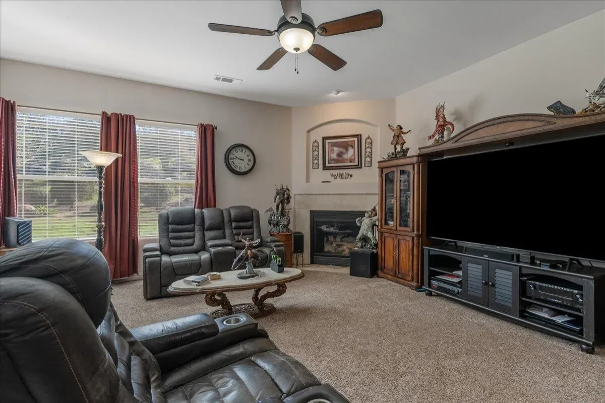 Set on approximately 1.7 acres, the property offers room to breathe, outdoor living areas designed for gathering, RV parking with full hookups, and energy-conscious features including a paid-off solar system with battery backup. Practical upgrades such as a tankless water heater and dual HVAC systems support long-term comfort and efficiency.