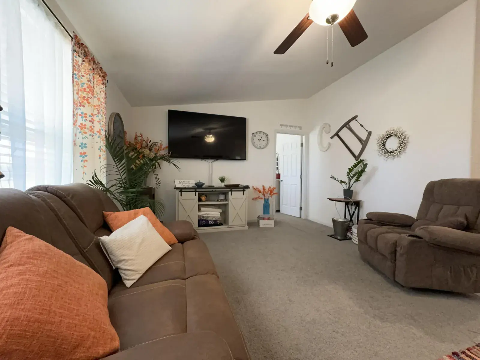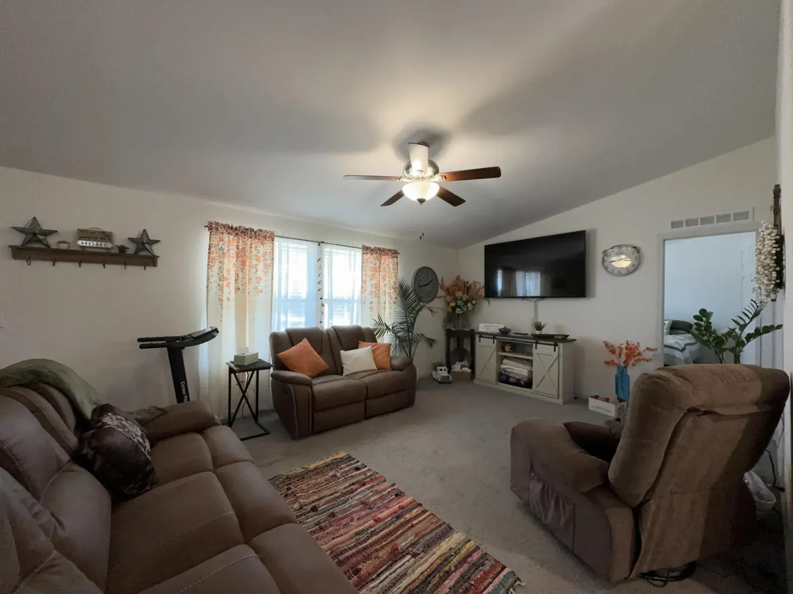 Tranquility, comfort, Privacy and a feeling of pride of ownership is what you feel as you drive up to 18272 Road 320 in Springville where you’ll see a spectacular view of the property and of the surrounding mountains. The Park Like front yard along with the huge beautiful oak tree is definately a stand out feature for many future family memories. The newer very modern 2021 manufactured home is Move In Ready for a new family. You will get privacy in this 3 bedrooms, 2 bathrooms split plan home. The master bathroom comes with a granite counter top dual sink vanity and a walk in closet. There is a ceiling fan in the living room and a spacious inside laundry room. You and your family will enjoy the spectacular sunsets and the bright stars in the evenings while sitting in the covered patio which faces the backyard mountains. The garage is a detached drive through 2 car garage. and there is also a carport for those extra toys. The 2.92 Acres is perfect for building another Unit, entertainment, , 4H projects, gardening, horses, and other farm animals or whatever your needs are. The kitchen has plenty of storage space as well as a small walk in Pantry. The 3-4 year old orange, fig, apple, mandarin, plum, pear, avocado, cactus, cherry tree, lime and lemon trees have already started to produce fruit. Call today and schedule to see this this little piece of Heaven so you won’t miss out on the opportunity to call it your home.