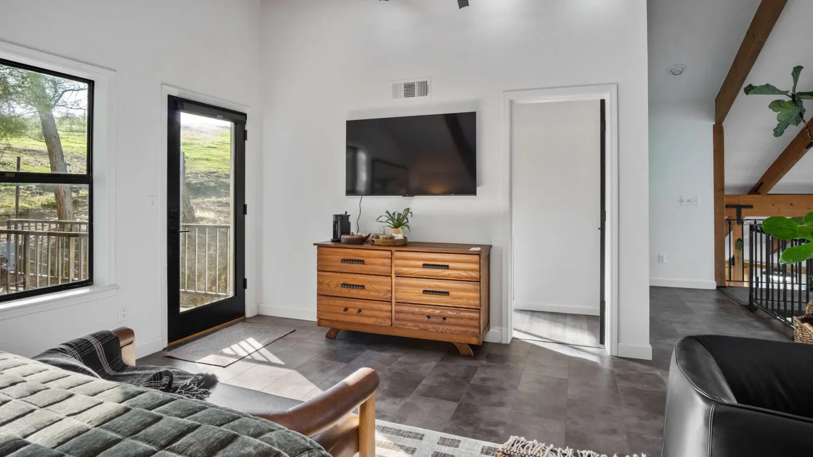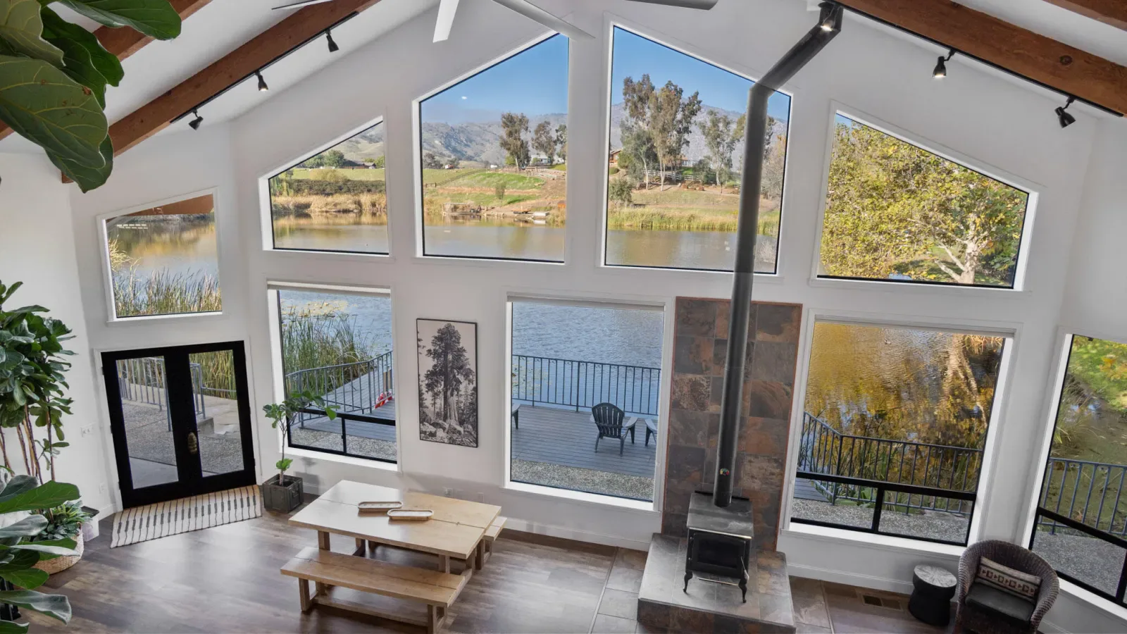 Tucked away in the natural beauty of Springville, this stunning A-frame retreat offers a rare opportunity to own your own private escape. Set on 5 peaceful acres and perched along the edge of a breathtaking 2-acre pond, the property delivers sweeping views, quiet surroundings, and a setting that feels worlds away. Inside, soaring ceilings with exposed beams and expansive windows fill the home with natural light and showcase the surrounding landscape. The open floor plan creates an inviting atmosphere, while a striking winding staircase leads to a loft-style second bedroom that overlooks the living space and tranquil water beyond. A spacious office or flex area provides additional room for work, creativity, or relaxation. Step outside to the covered patio and take in the calm water, open skies, and gentle sounds of nature. The stocked private pond, open pastureland, long private driveway, and detached 20×30 shop complete this exceptional property. For those seeking additional land or future possibilities, an adjacent 3.5-acre parcel is also available. A property like this is more than a home, it’s a peaceful retreat where architecture and nature come together.