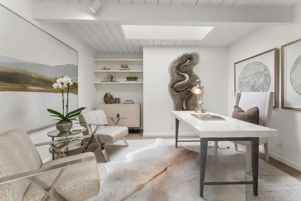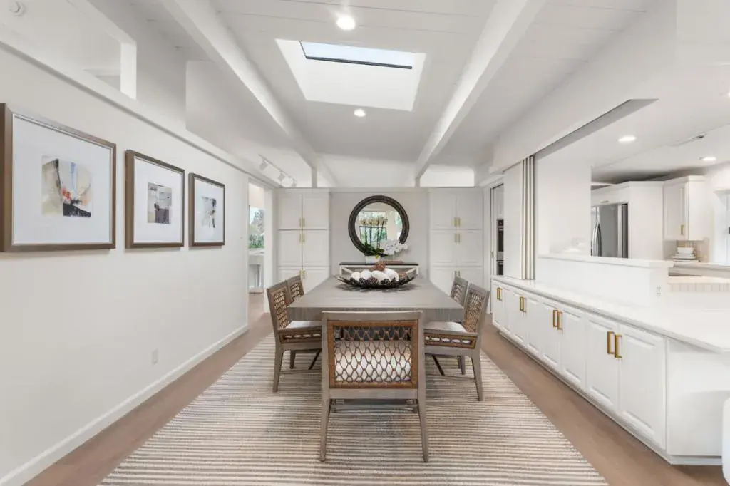 This home is available to eligible Stanford faculty ONLY. Enjoy classic California living at this exquisite example of mid-century modern architecture, timelessly designed with vaulted high beamed ceilings and walls of glass to blur the lines between the spacious interiors and the tranquil outdoors. Throughout, the home is bathed in sunlight from skylights and high clerestory windows, all united by sweeps of wide-plank luxury vinyl flooring. Respectfully updated for todays lifestyle, an open and expansive great room combines the stunning living room, formal skylit dining room, and a large, all-white kitchen. French doors open to the front courtyard for exceptionally easy outdoor entertaining. At the rear of the home, an inviting family room with fireplace has a sliding glass door to the back patio, lawn, and tranquil treetop views. An office/den takes care of work-from-home needs. The single-level home features 3 generously sized bedrooms and 2 baths including a lovely primary suite with a sliding glass door to the backyard. Feeling miles away from it all, but with an excellent Stanford location and easy access to top-rated Palo Alto schools, this is truly a wonderful place to call home.