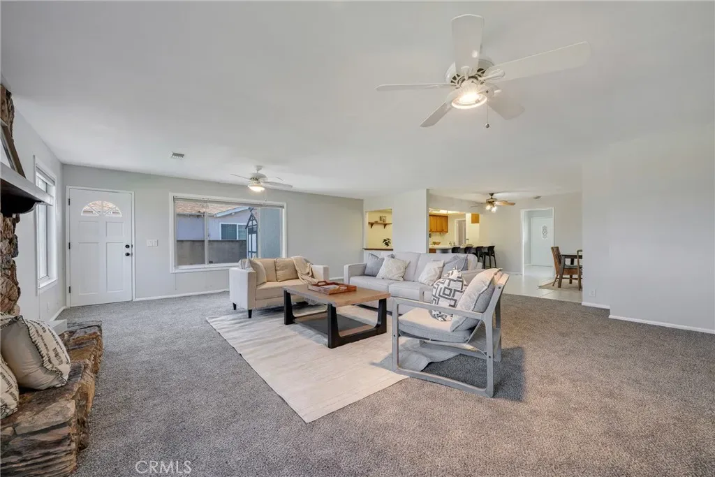 This beautifully maintained and expanded home offers exceptional flexibility with a separate additional living space featuring a private entrance, 2nd private master bedroom, and ensuite bath, perfect for multi-generational living, extended family, or guests. Enjoy gatherings in the oversized family room with a cozy fireplace or cook and entertain in the charming country kitchen complete with an eat-in nook and bar-style seating. Fresh paint and new carpet give the home a clean, move-in-ready feel. Ideally situated at the beginning of a quiet cul-de-sac with no through traffic, this home backs to a beltway with no neighbors directly behind, offering added privacy. Conveniently located less than 5 minutes from the elementary school and just a 10-minute walk to Stanton Central Park, featuring a children’s splash pad and tennis courts. Enjoy easy access to world-famous attractions like Knott’s Berry Farm and Disneyland Park, both just a short drive away. This home truly combines space, privacy, and prime location — a must-see! 7401 Grandoaks Drive; You Will LOVE Living Here!