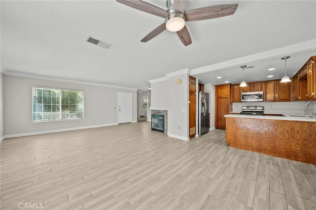 Lovely 3 bedroom, 2.5 bath townhouse in the highly desired community of Diamond Head! This home features wood look tile flooring throughout the downstairs, fireplace with gas logs, kitchen with quartz countertops, gas range, built in microwave, stainless sink w/ new pull out faucet, and recessed lighting. Step outside the sliding glass doors to your private, nice sized patio which leads to the attached 2 car garage. Upstairs features newer carpet, new blinds in all bedrooms, mirrored closet doors, upstairs laundry and linen closet. Hall bath includes tub/shower, Primary bath features light and bright, fully remodeled shower, frameless shower door, new vanity, lighting, and paint. HOA features two children’s playgrounds within walking distance and beautiful HOA pool. Close proximity to Stevenson Ranch parks, award winning schools, shopping, dining, and convenient freeway access!