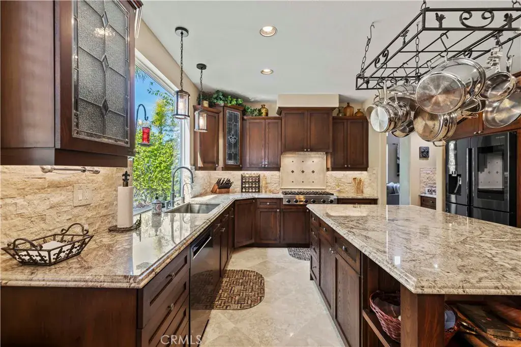RV PARKING & OWNED SOLAR!!! Welcome to Your Dream Home in the Exclusive Gated, Enclave Community at Stevenson Ranch! This beautifully upgraded five-bedroom, three-bath residence is nestled within one of the most desirable gated communities in the valley—offering a perfect blend of luxury, comfort, and functionality. This is an entertainers dream home! From the moment you step inside, you’re greeted by soaring high ceilings, a custom-built stairwell, and a spacious, open layout. The gourmet kitchen is a chef’s delight featuring top-of-the-line finishes and modern upgrades throughout. Unique highlights include a custom game room and a charming, built-in wine room cleverly tucked beneath the staircase—ideal for stylish entertaining. Step outside to your private backyard retreat, where California living shines. Enjoy a recently refinished pool with gorgeous new tiles, tranquil water features, and an upgraded fire pit surrounded by beautiful stonework. The covered patio with a built-in fireplace creates the ultimate outdoor living space for gatherings or quiet evenings at home. Energy efficiency meets innovation with fully paid-off SunPower solar panels, providing coverage for up to 90% of your electric bill—delivering sustainability without sacrificing luxury. The property also includes RV parking with an electric gate and access to all the upscale amenities that make Stevenson Ranch such a coveted location. Ideally located near shopping, dining, entertainment, and offering easy access to major freeways—this home truly has it all. Don’t miss the opportunity to own this exceptional Stevenson Ranch masterpiece—where elegance meets everyday living.