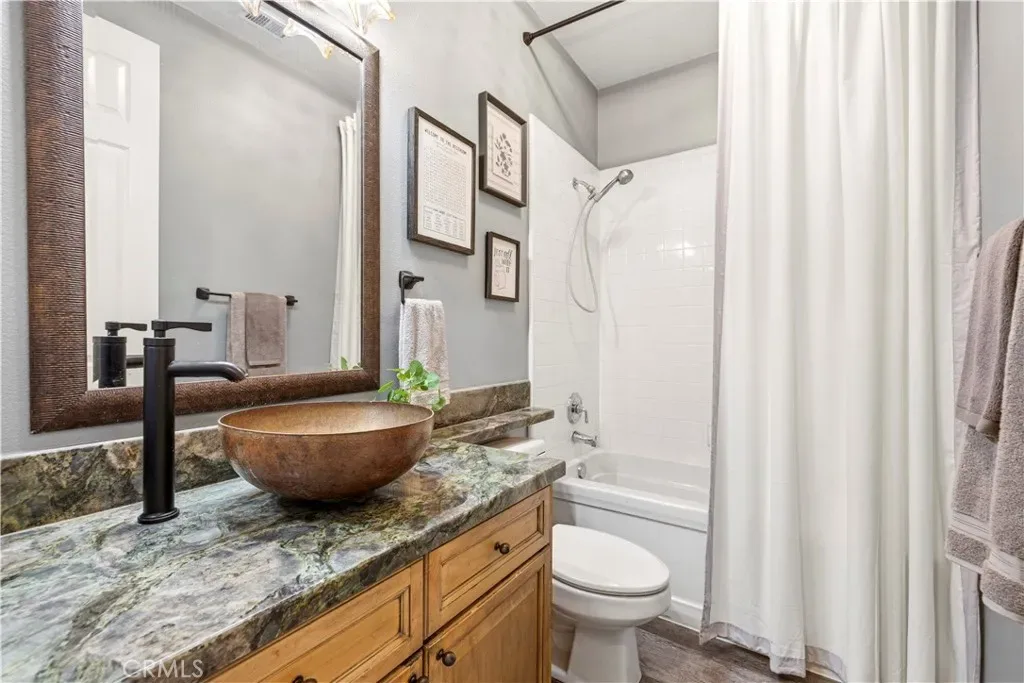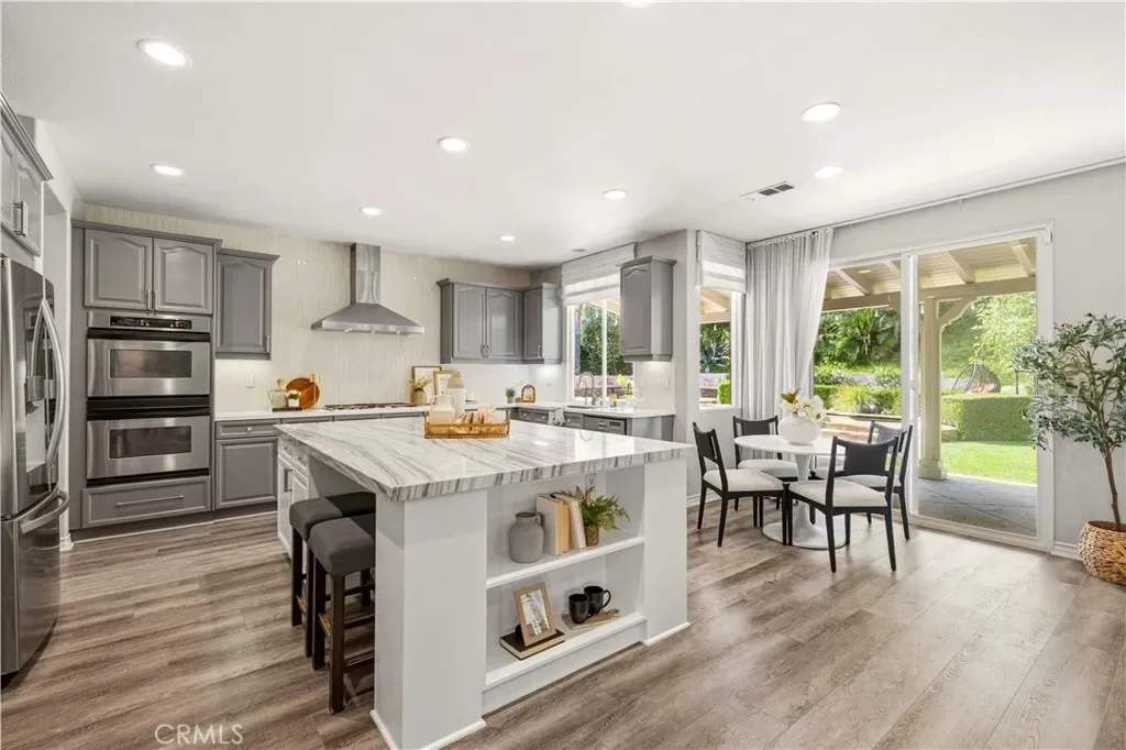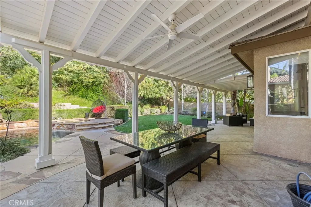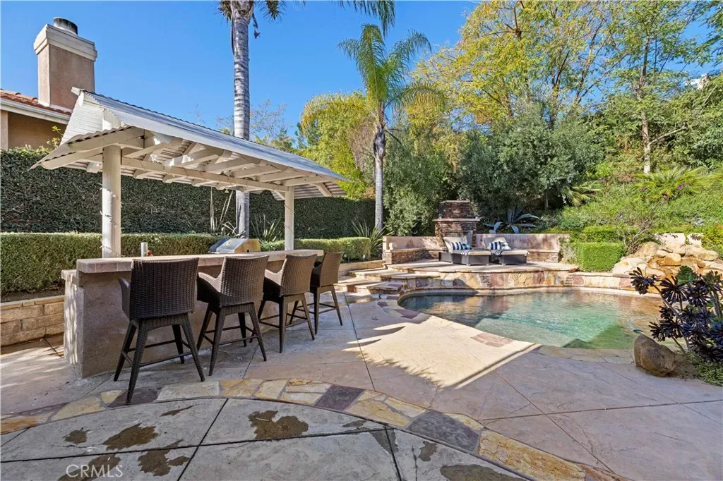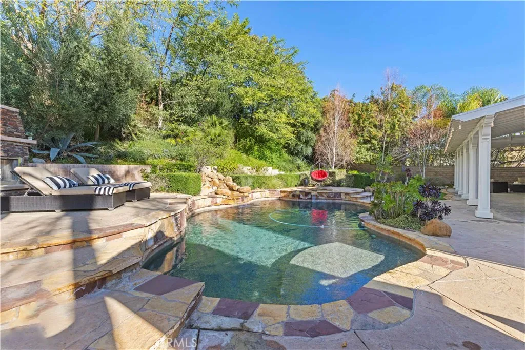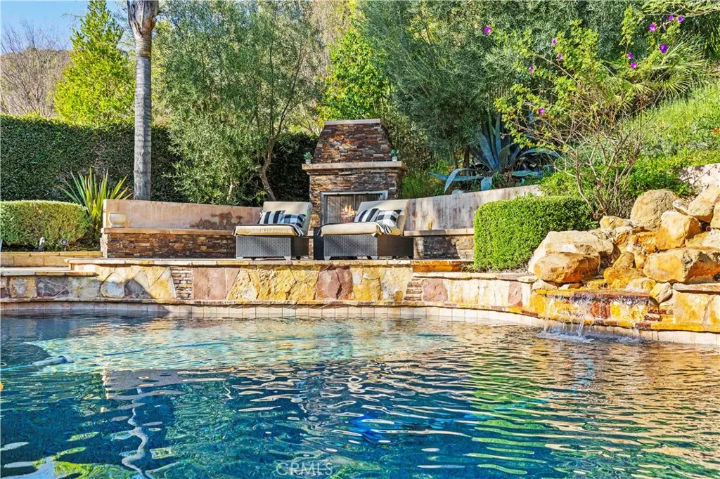 Welcome to an exquisite Southern Oaks retreat, where luxury meets family-friendly living in one of Santa Clarita’s most coveted neighborhoods! This magnificent 5-bedroom, 4-bathroom residence, spanning 3,835 square feet, offers an unparalleled living experience, perfectly complemented by the nearby award-winning schools! Step inside to the abundance of natural light, soaring ceilings and newer wood-like flooring. The open floor plan offers flexibility in design and placement, including a convenient downstairs bedroom and bath, ideal for multi-generational living, office, or guest room. Entertaining is a breeze with a separate dining room, dry bar, and spacious living room featuring a cozy fireplace with built-ins and is open to the well-appointed kitchen. The kitchen is a true chef’s dream featuring expansive granite countertops, a central island perfect for entertaining, a walk-in pantry, and premium double ovens. This space seamlessly flows into inviting living areas, making it the heart of your home for everyday moments and grand celebrations alike. Upstairs, discover a versatile loft space, 3 additional bedrooms with 2 bathrooms, plus the spacious primary suite. The primary suite is a true escape, featuring a sunny balcony with backyard views, offering the perfect spot for morning coffee or evening relaxation. The spa-inspired, remodeled primary bath features dual vanities, a soaking tub, a walk-in shower, and two walk-in closets, providing a luxurious escape after a long day. Outside, the backyard is a private oasis designed for ultimate enjoyment. Immerse yourself in the sparkling pool, complete with a waterfall, enjoy the views from the newer covered patio, or host unforgettable gatherings at the built-in BBQ and bar area. The meticulously landscaped grounds provide a resort-like setting, ensuring privacy and endless outdoor fun! Attached 3-car garage plus convenient upstairs laundry room. Close to top-tier public schools, diverse shopping, restaurants, all with the peaceful embrace of nature. Enjoy seamless freeway access while still being moments away from hiking trails, parks, and more! This gorgeous move-in ready home is ready for you!