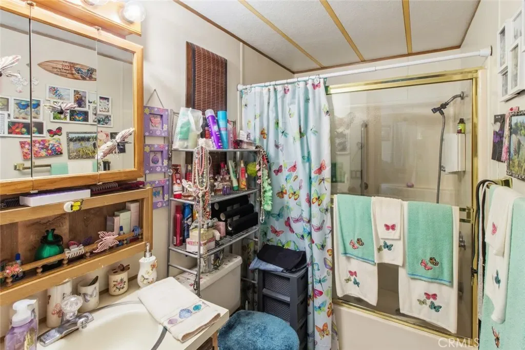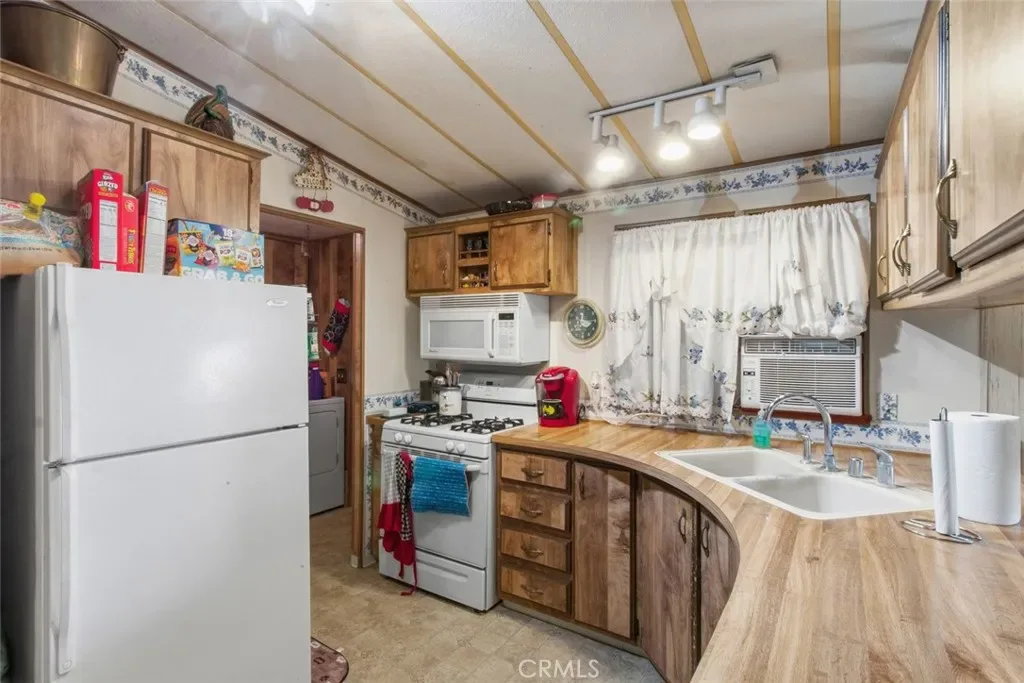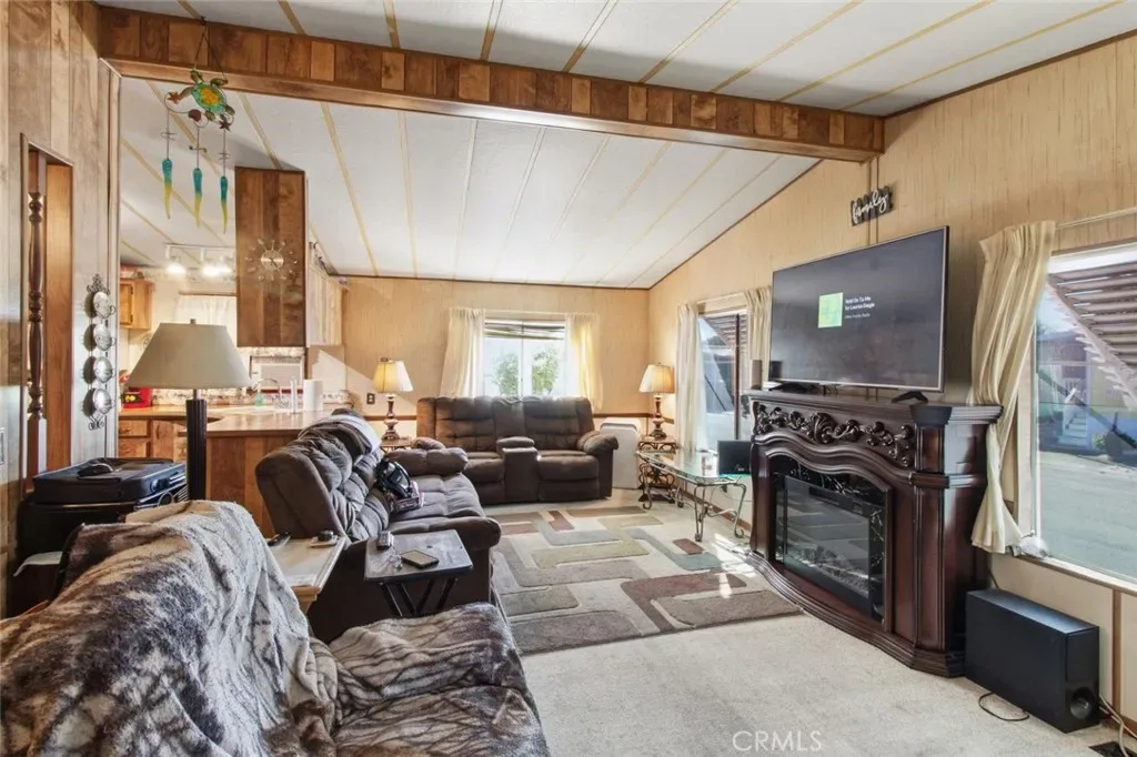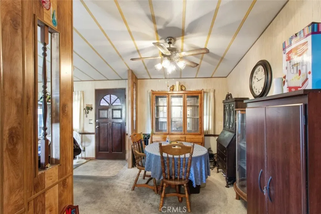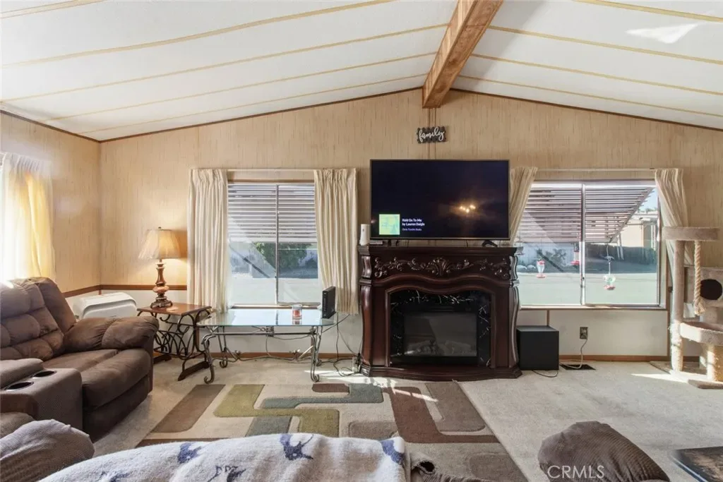 Step into comfort and charm with this wonderful 2-bedroom, 2-bath manufactured home offering approximately 1,056 square feet of inviting and functional living space. Thoughtfully designed with a warm, welcoming feel, this home is perfect for those seeking both comfort and practicality in a peaceful setting. Inside, the spacious living room greets you with vaulted ceilings, exposed beam style accents, and an abundance of natural light pouring through large windows. The open-concept layout seamlessly connects to the kitchen, dining area, and living room, enhancing the home’s airy and connected feel. The kitchen offers a functional U-shaped design with linoleum flooring, rich wood-style cabinetry, and ample counter space for meal preparation. A free-standing stove and oven, overhead microwave, and window over the sink provide both convenience and natural light. Adjacent to the kitchen, the dining area offers plenty of space for gatherings and everyday meals. Both bedrooms are generously sized with soft carpeted flooring and a comfortable, restful atmosphere. The primary bedroom features enough space for a dedicated makeup station and has a spacious walk-in closet, adding both convenience and privacy. The primary bathroom includes a shower-over-tub combination, a well-lit vanity space, and practical layouts designed for ease of use, and the second bathroom includes a dedicated shower stall. A separate laundry room with washer and dryer hookups and additional cabinetry adds everyday functionality and extra storage. Step outside to enjoy the covered front deck, perfect for morning coffee or unwinding in the evening. The covered carport provides convenient, protected parking, while the backyard offers a relaxing and easy-to-maintain outdoor retreat. Enjoy lush green grass, a designated garden area ideal for planting, and wooden fencing that adds both privacy and charm. A matching storage shed provides additional space for tools, hobbies, or seasonal items. Blending comfort, character, and outdoor enjoyment, this home presents a wonderful opportunity to enjoy relaxed living in a well-maintained and welcoming community. Don’t miss your chance to make this inviting property your own! Welcome Home!!!