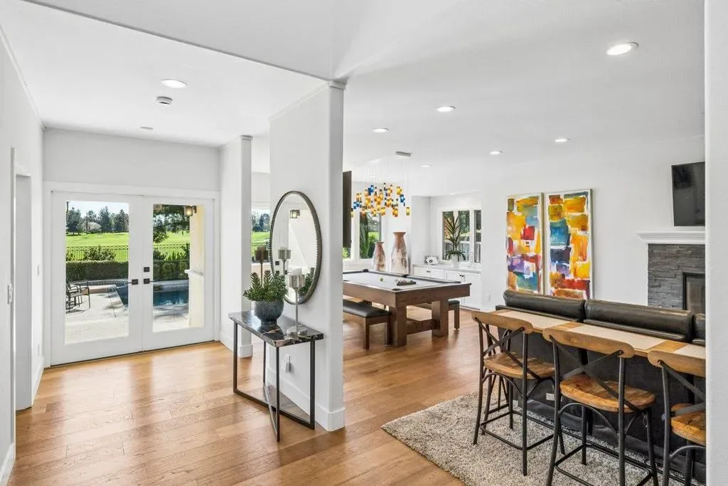 Set along the fairways of the prestigious Brookside Country Club, this impressive estate captures the essence of California living within Stockton’s most desirable community. Spanning nearly 4,000 sqft, the residence blends generous scale with thoughtful design & sweeping views of the manicured golf course. Soaring vaulted ceilings with dramatic exposed architectural beams create a sense of volume & light throughout the home. Hardwood flooring flow & expansive windows frame tranquil golf course vistas and fill the home with natural light. At the heart of the home is a beautifully remodeled showcase kitchen, designed for both everyday living and entertaining. The space features custom cabinetry, designer stone countertops, a large center island, & high grade appliances all set beneath the dramatic vaulted ceiling & exposed beam detail. The expanded master suite serves as a private retreat with a generous sitting area and panoramic windows overlooking golf course fairways. Updated bathrooms complement the home with contemporary design. Outside, a sparkling pool and expansive patio areas create the perfect environment for relaxation and entertaining. Located within the secured gates of Brookside, residents enjoy privacy, and access to Stockton’s finest country club community.