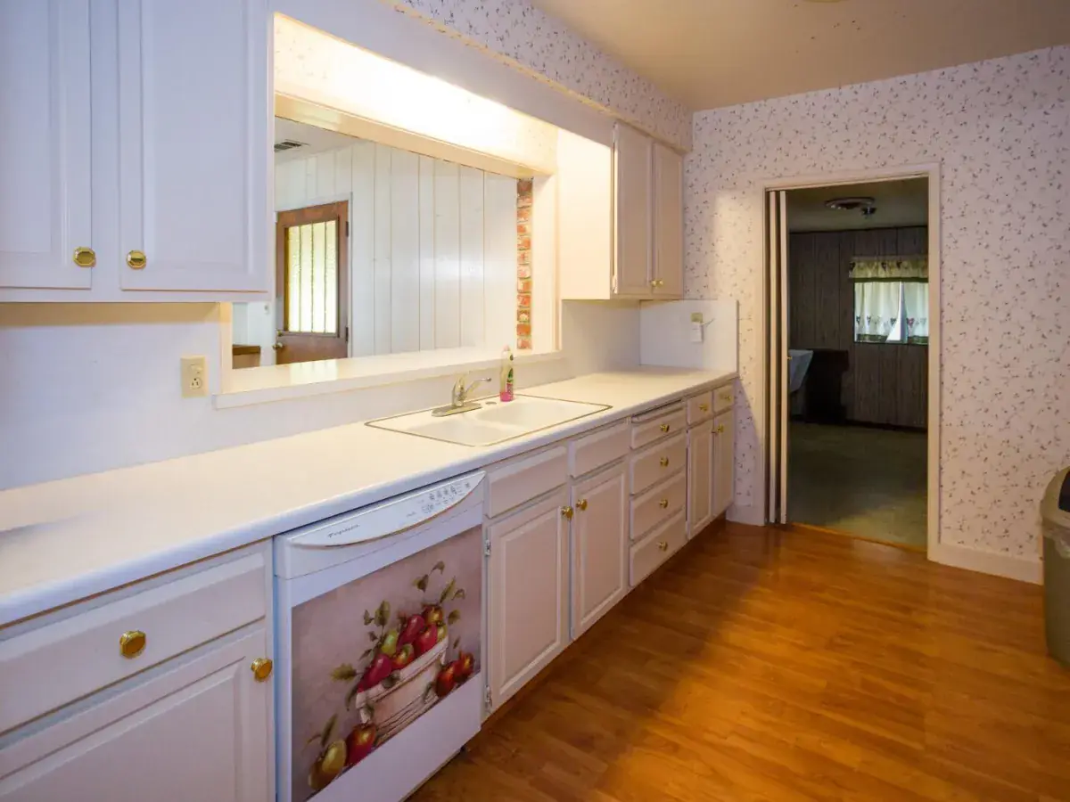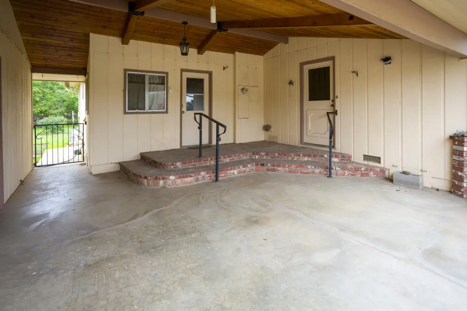 Remodel 30 years ago, and it sits on a nice family country parcel of good soil & its own well. Huge great room open to the kitchen & dining room which has a built in hutch. 1 full bath w/ shower over tub splits 2 bedrooms, plus 3/4 bath serves the rear bedroom. 143 sqft front porch cover & a 326 sq ft covered rear door patio. 600 sq ft steel building on a slab w/ auto garage door & shelving. Park a fleet off the road with huge cement driveway & apron. 1350 sq ft covered equipment storage w attached 450 sqft enclosed shop. Oversized garage has 2 car auto door but room for more vehicles, & has built in cabinets plus a work bench, & a 1/2 bath mud room.