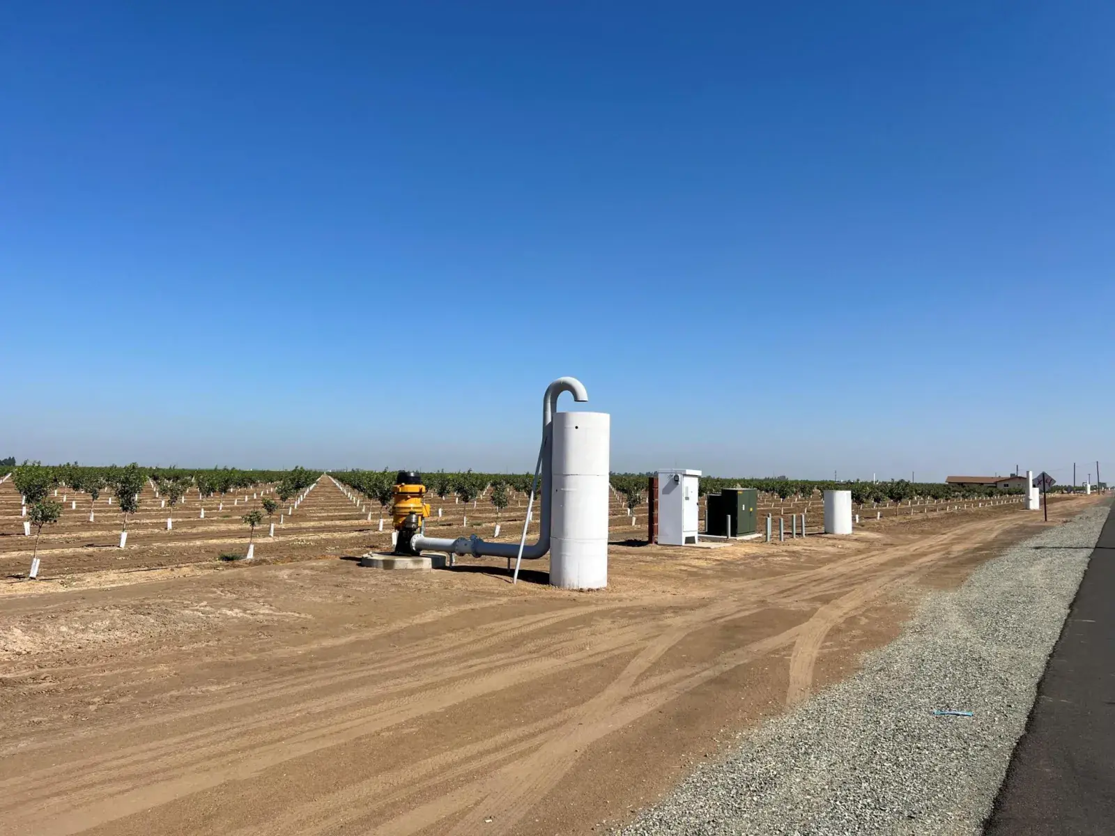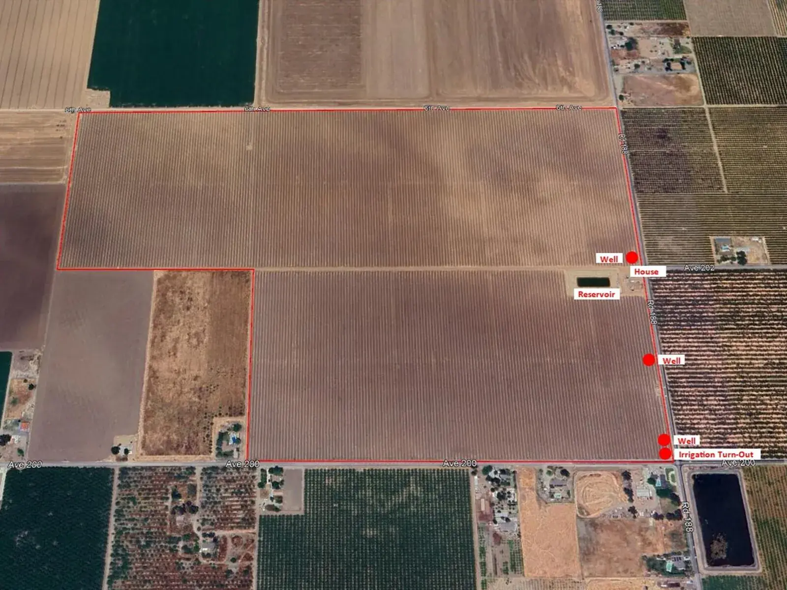 Beautiful Pistachio Ranch located in Lindmore Irrigation District. Golden Hills Pistachios planted in May 2022. Great water conditions with well & pumps, plus surface water. Reservoir with 100 HP with variable speed motor. 10 pot filtration system with Sand Media Filter irrigation system installed by Fruit Grower Supply. UCB1 Rootstock and 16 ft x 19 ft spacing. This property shows pride of ownership.