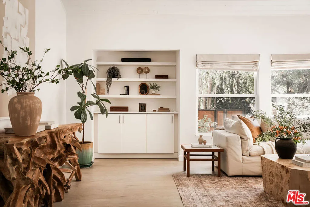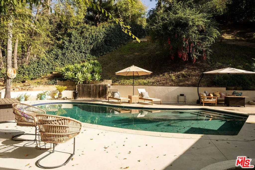 A private hillside escape, tucked away at the end of a serene cul-de-sac in coveted Studio City, this home blends privacy, sophistication, and effortless living in one remarkable package. From the moment you step through the gates, you’re welcomed into a tranquil retreat where every element has been thoughtfully curated for both comfort and style. Expansive windows flood the interiors with natural light, highlighting wide-plank wood floors and vaulted ceilings that create a sense of airiness and warmth. The open-concept layout is designed for modern living, seamlessly connecting spaces for effortless entertaining or quiet evenings at home. Walls of glass dissolve the boundaries between indoors and out, with sliding doors from the primary suite and dining area opening to a resort-inspired backyard. The outdoor space is nothing short of exceptional. A sparkling pool invites you to unwind on sunny afternoons, while intimate seating areas around a fire pit create the perfect ambiance for gatherings under the stars. Surrounded by a hillside rich with mature trees and greenery, the property exudes a sense of seclusion and natural beauty, a rare blend of luxury and tranquility. At the heart of the home, the chef’s kitchen features professional-grade appliances, a spacious breakfast bar, and a dining area equally suited for casual meals or elegant entertaining. A generous pantry elevates functionality without compromising the home’s sleek aesthetic. The primary suite is a study in understated luxury, with deep green Venetian plaster walls, plush velvet drapes, and French doors that open to the backyard. A cozy sitting area invites relaxation, while the en suite bath delivers a spa-like experience. Two additional bedrooms and a beautifully appointed hallway bath provide ample space for family or guests, and a versatile bonus room with its own bath offers endless possibilities whether as a guest suite, creative studio, or home office. Even the practical elements of this home are elevated, from the well-designed laundry room to the thoughtful layout that ensures every detail enhances ease of living. Located just minutes from Studio City’s best dining, shopping, and the highly sought-after Carpenter Elementary School, this home represents the ideal fusion of location, lifestyle, and design.It’s more than a home, it’s a retreat you’ll never want to leave.