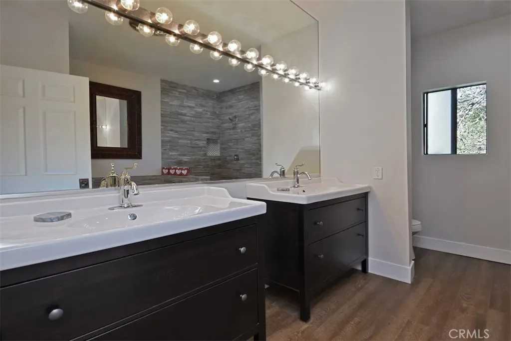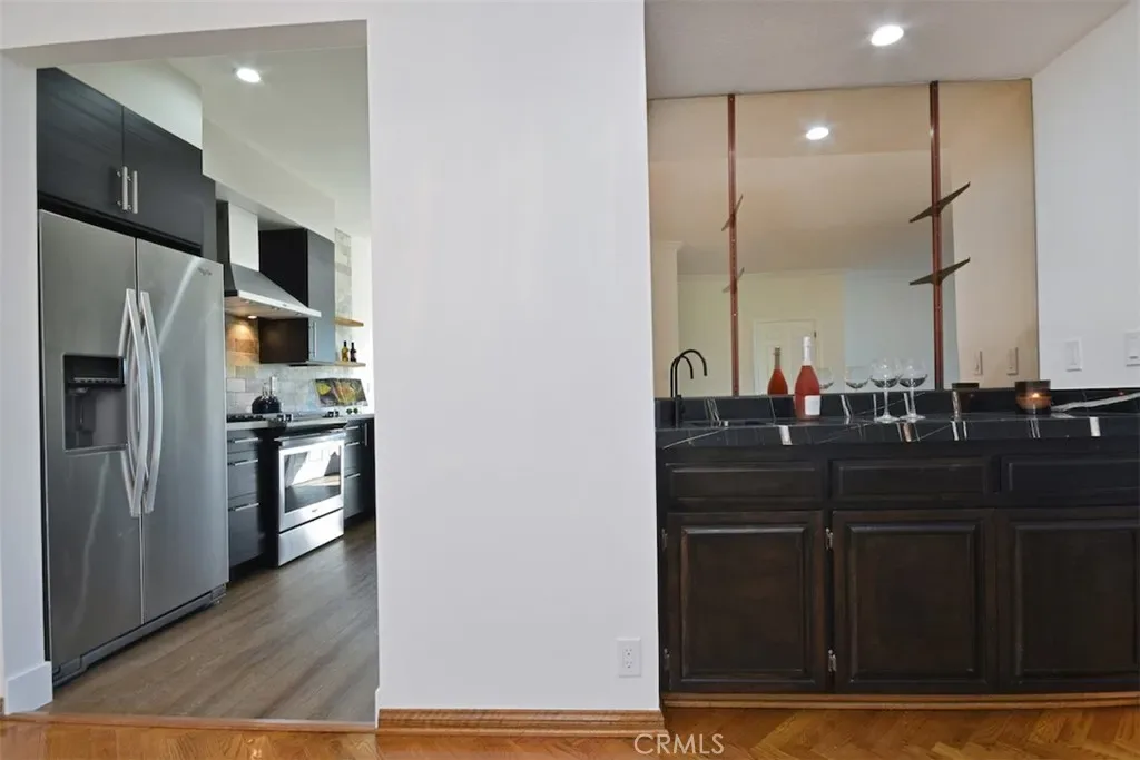 area boasts stainless steel appliances and tons of storage and counter space. An abundance of natural light, the huge living room with fireplace opens on to a spacious balcony and the formal dining room accented by a mirrored wet bar. The master suite has walls of closets, makeup vanity and bath which has double sinks, soaking jetted tub and separate shower. The 2nd bedroom has a double door entry, views and its own full bath. Side by side washer/dryer and side-by-side parking too! Just some of the features. Located blocks from trendy Tujunga Village, Aroma Café, CBS Studio, Trader Joe’s, Jones on 3rd, Alfred’s, tons of great restaurants and shops. And let’s not forget the Farmers Market on Sunday morning—all within a stone’s throw-like living in Manhattan but with the GREAT weather!