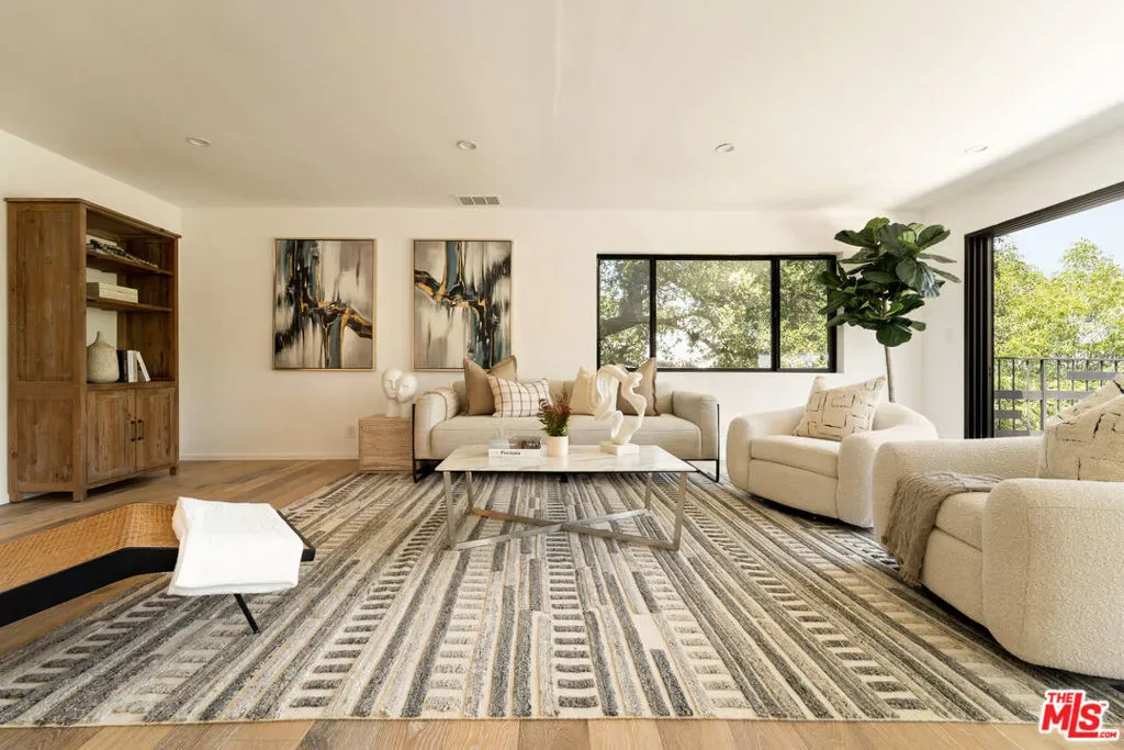 Experience indoor and outdoor living with abundant natural light and an easy flow throughout overlooking the treetops and city lights. The main level is designed for gathering and entertaining, featuring an open living area and a modern kitchen equipped with premium appliances. Large doors open to a generous deck, creating a natural extension of the living space for dining, entertaining, or relaxing outdoors. The level below features three well-appointed en suite bedrooms. The primary suite offers a private retreat with a comfortable sitting area, a spacious en suite bathroom with dual vanities, and a walk-in closet. This floor also includes a dedicated office and an additional en suite bedroom with a standalone soaking tub and separate shower. The lower level offers additional versatility with a central lounge area and two en suite bedrooms, currently used as a home gym and a children’s room, with flexible space that can be adapted to suit a variety of uses. Outdoor spaces include a welcoming front porch, expansive decks on multiple levels, and a paved side yard that provides additional areas for relaxation and entertaining. Located within the highly regarded Carpenter Community Charter School district and just minutes from the shops, cafs, and restaurants along Ventura Boulevard, this property offers both convenience and a sought-after Studio City location.